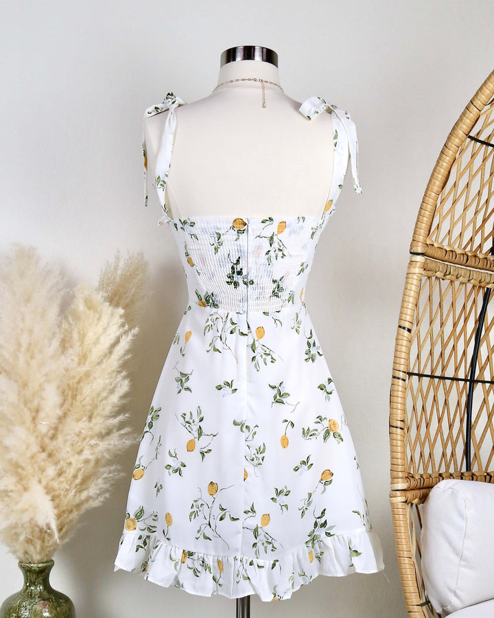 This beautifully constructed dress features a tie strap design, smock back with hidden zipper, romantic floral prints and a chiffon like fabric design.