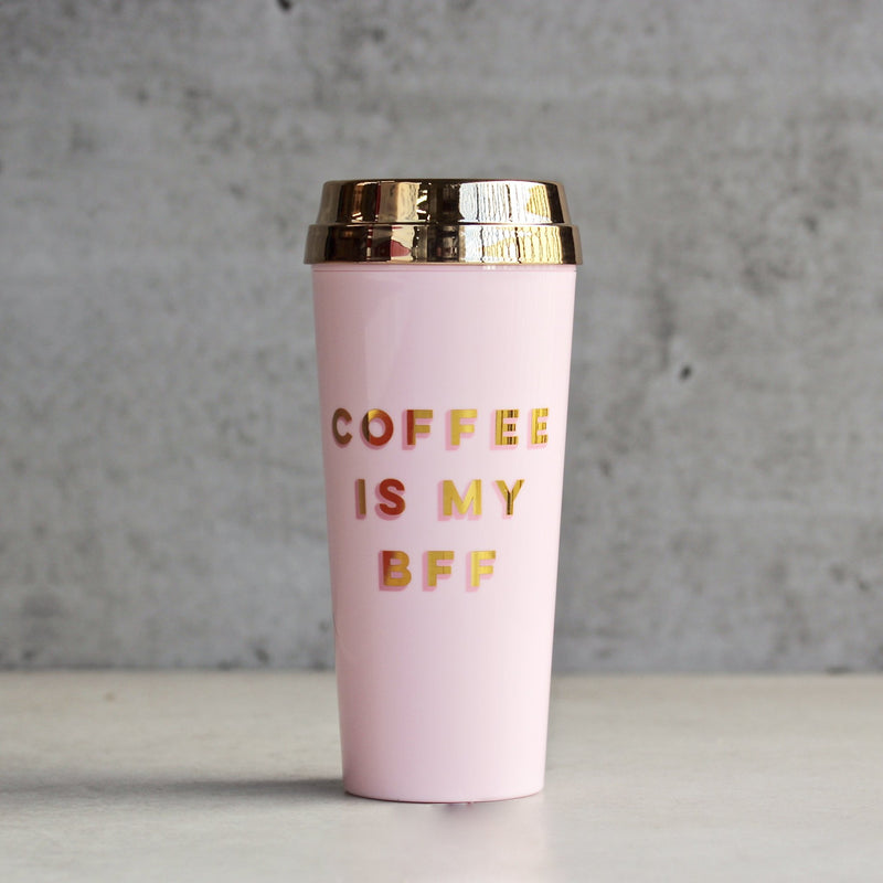 this mug is practically fit for royalty. it's totally insulated and has an easy slide top. oh right. and it features the most beautiful combo of shimmery pink-infused acrylic and shiny metallic gold accents. because we believe your bff deserves the best, even if it's a hot drink.