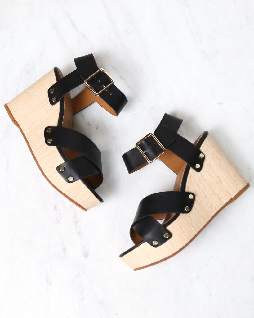 I loved these shoes so, so much. They're cute and comfy and perfect for summer. However, the first time wearing them out, the toe of one heel caught on the wooden wedge part of the other heel and left a huge dent in it. I can't wear them again because it's very obvious and natural wood isn't easy to fix. I'm heartbroken, but as long as you take care, they're so awesome.