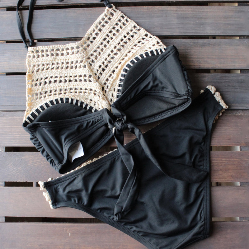 bikini lab - mix & match this is the remix crochet halter bralette (top only) - black - shophearts - 1