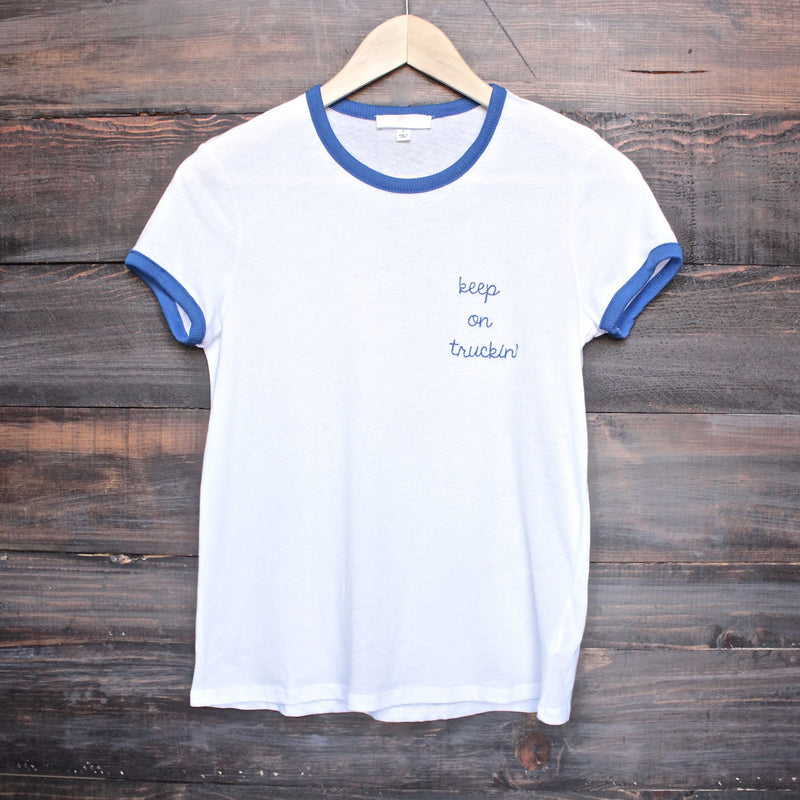 BSIC - keep on truckin' white + blue ringer tee - shophearts - 2