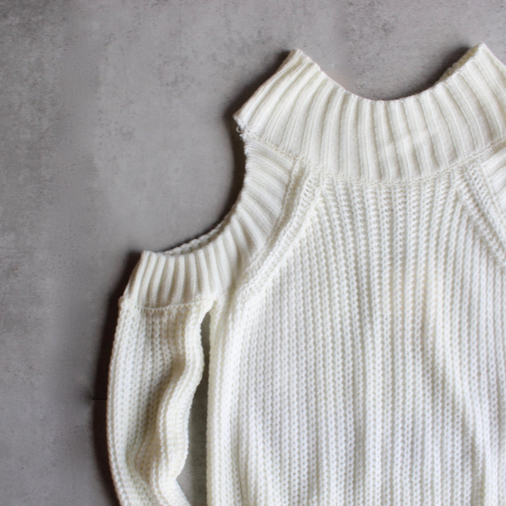 Cold shoulder knit sweater - ivory - shophearts - 1
