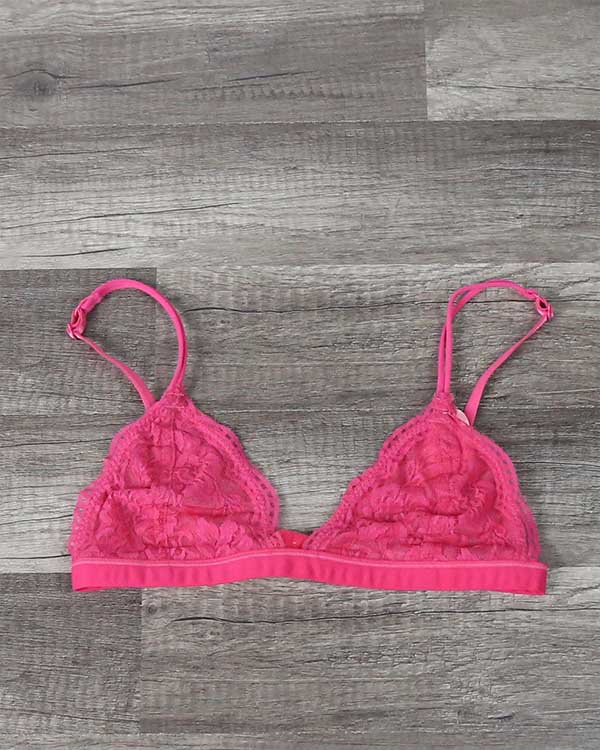 Victoria I love these bras. They are not only soft and comfortable but very pretty too! It is kind of thin though and I would honestly not get one if you are above a B. I got 2 in pink and white in med/lg and I'm a 34B.
