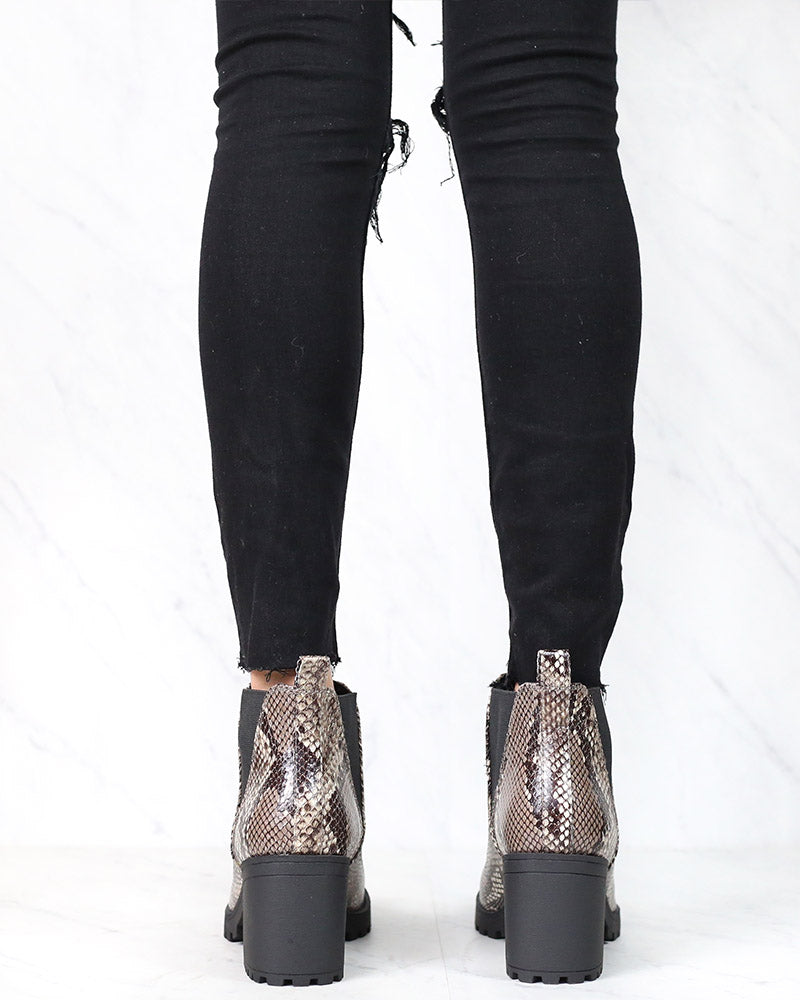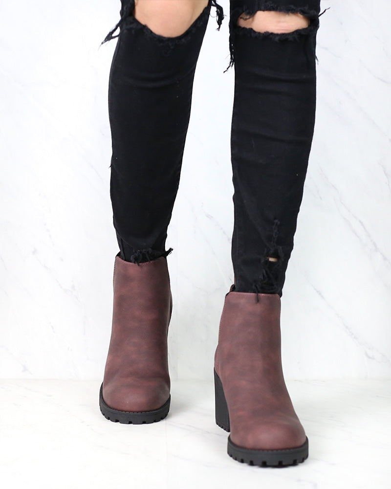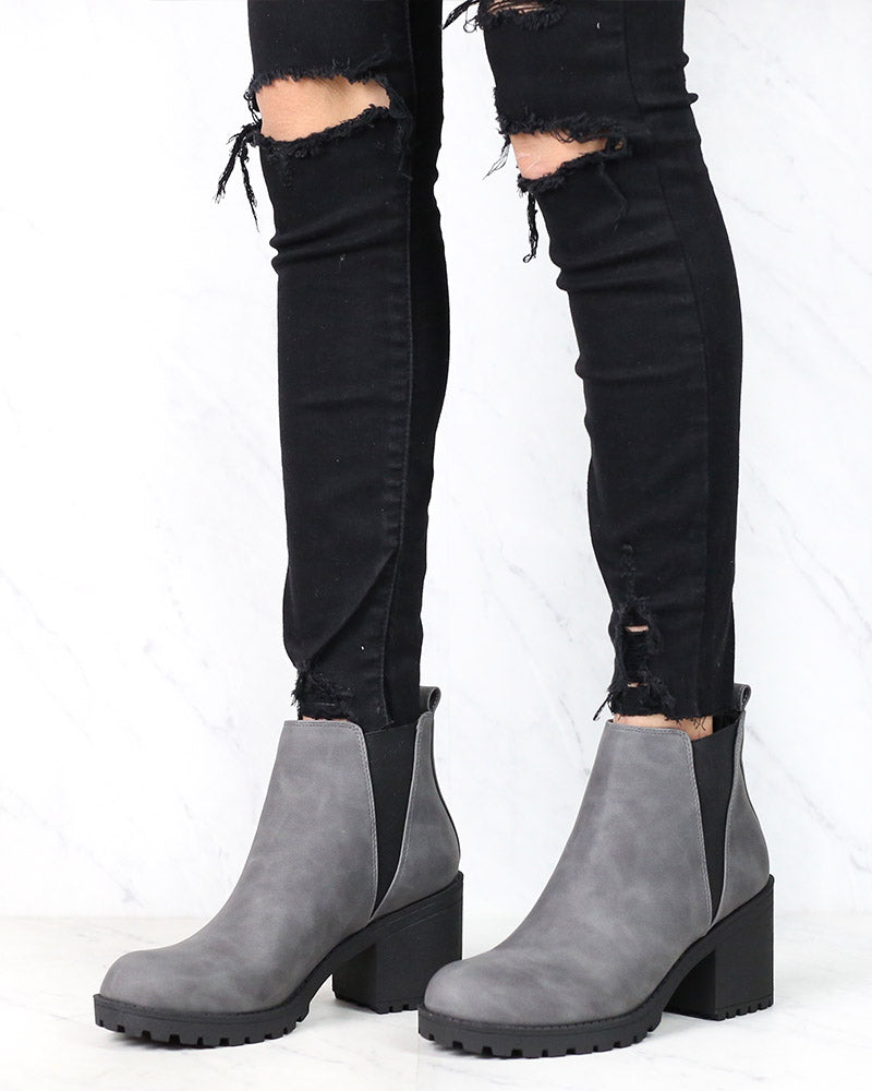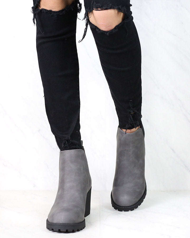 These Lisbon chunky block heel ankle booties are a closet staple. These boots are super cute and will be a unique piece in your outfit! Wear this with a wide brim hat, long line cardigan, casual tee, and skinny jeans for a super cute and casual outfit!