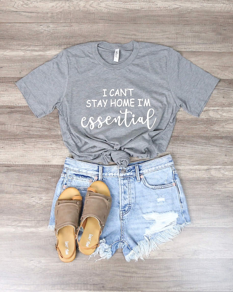 This super cute "I Can't Stay Home, I'm Essential" tshirt is a graphic tee to lighten the mood. Pair this with denim shorts for a casual and cute look!