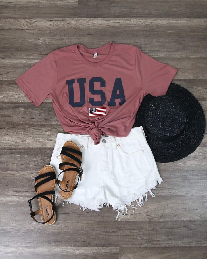 Distracted - USA Shirt Flag Graphic Tee in Mauve
