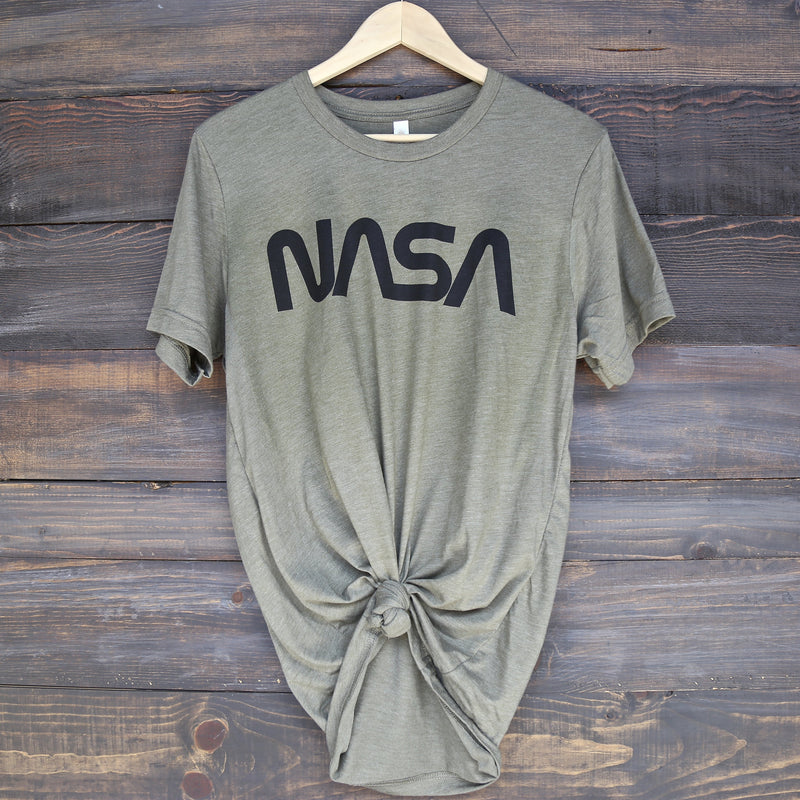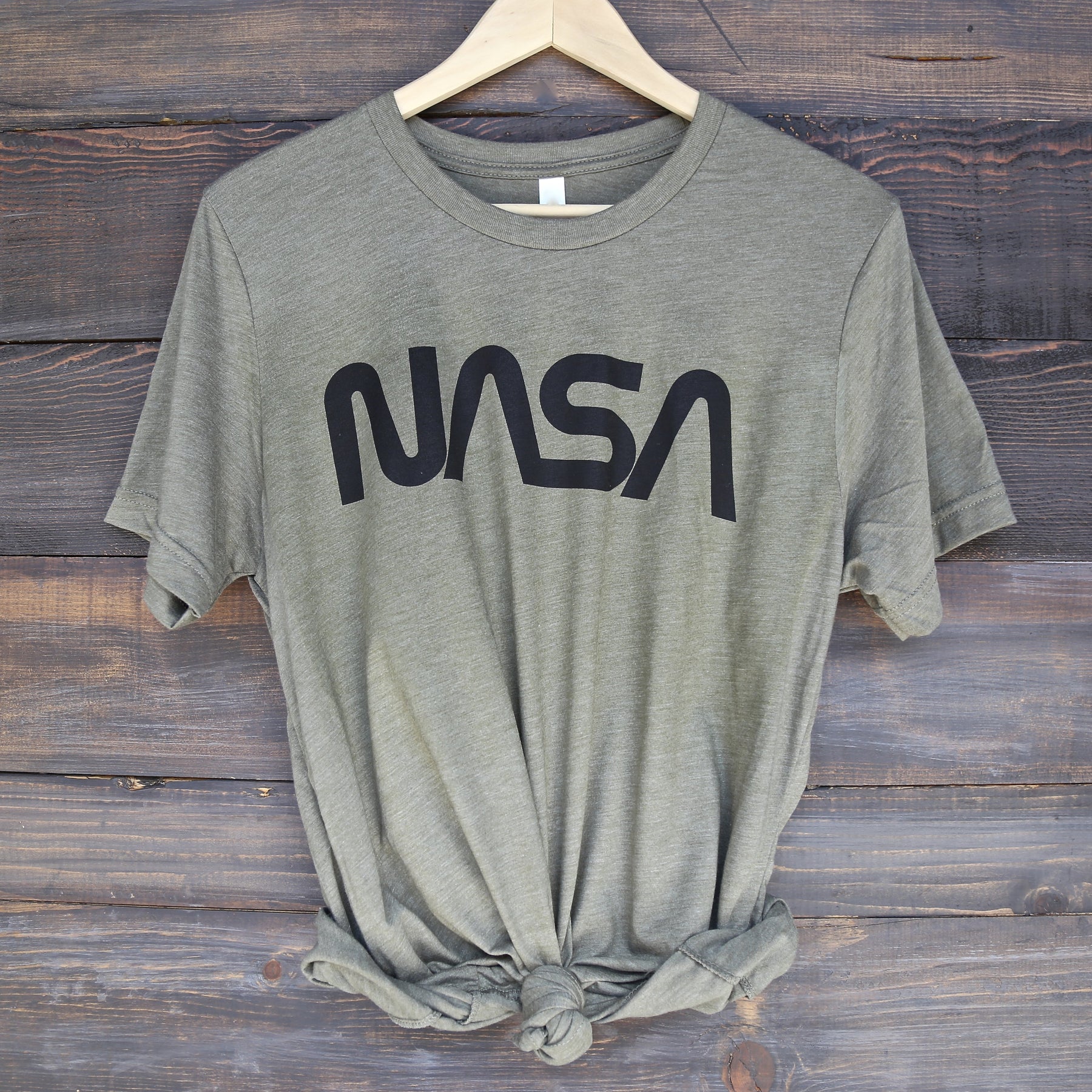 Distracted - Vintage/Retro NASA Worm Logo Unisex Graphic Tee in Olive/Black