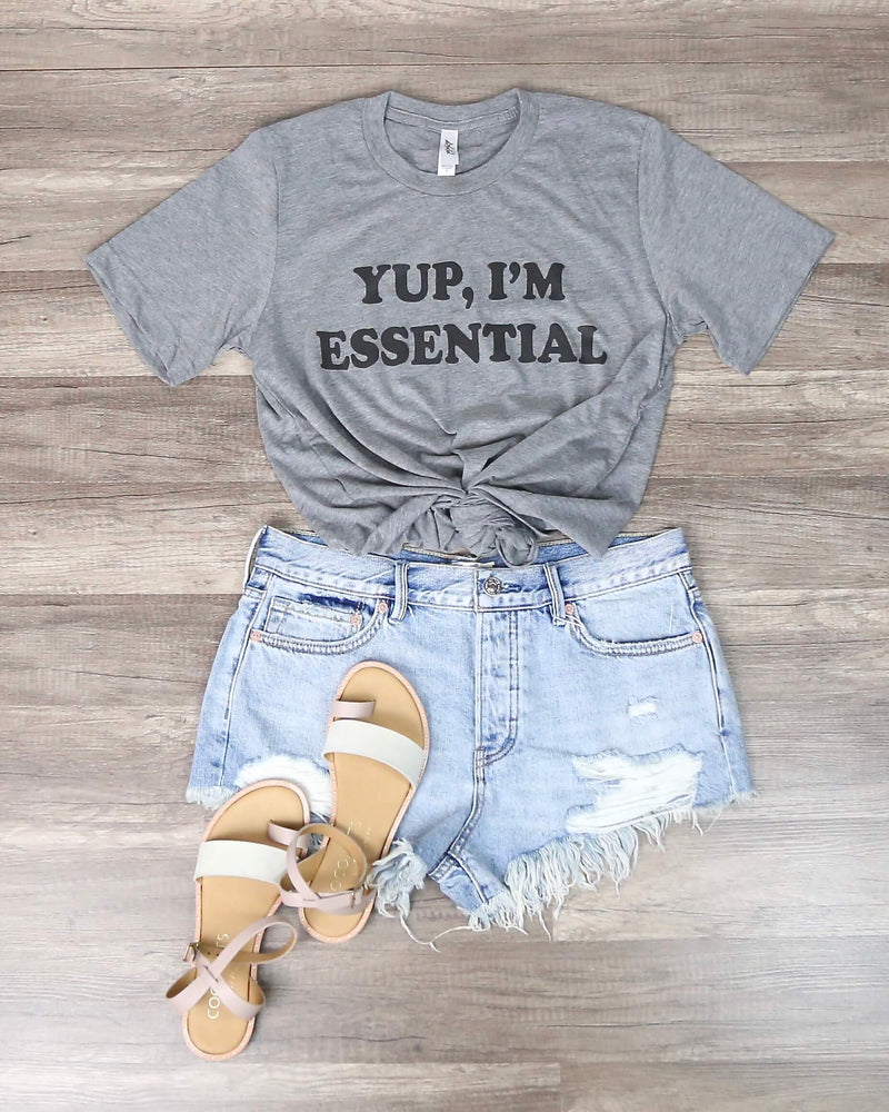 This super cute "Yup I'm Essential" tshirt is a funny graphic tee to lighten the mood. Pair this with denim shorts for a casual and cute look!