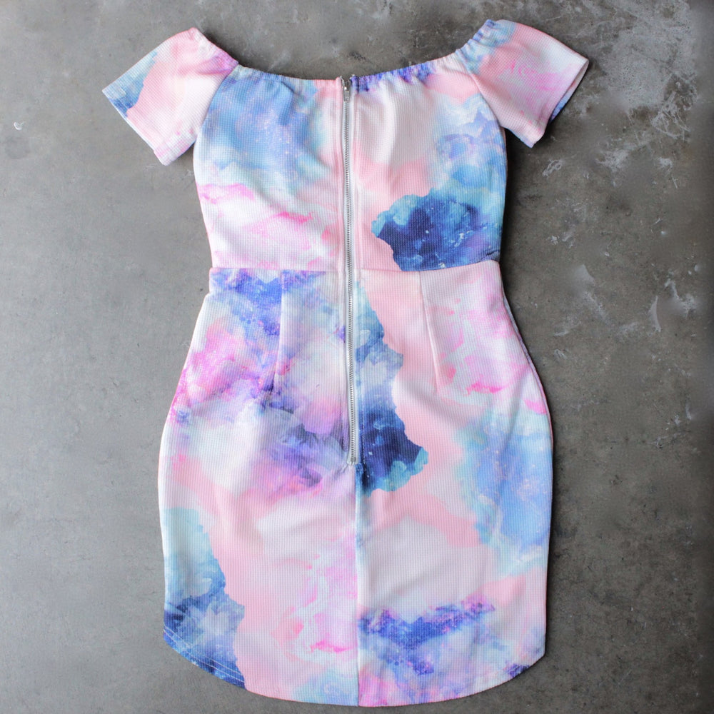 dreamy off the shoulder watercolor bodycon dress - shophearts - 1