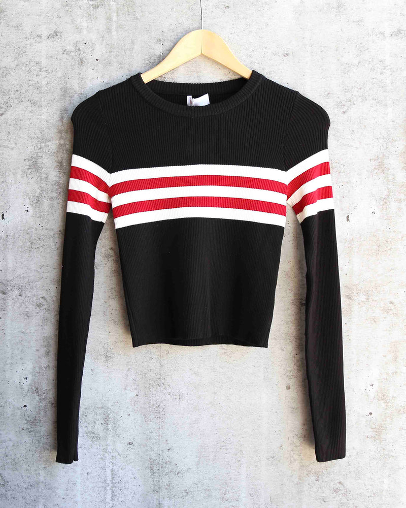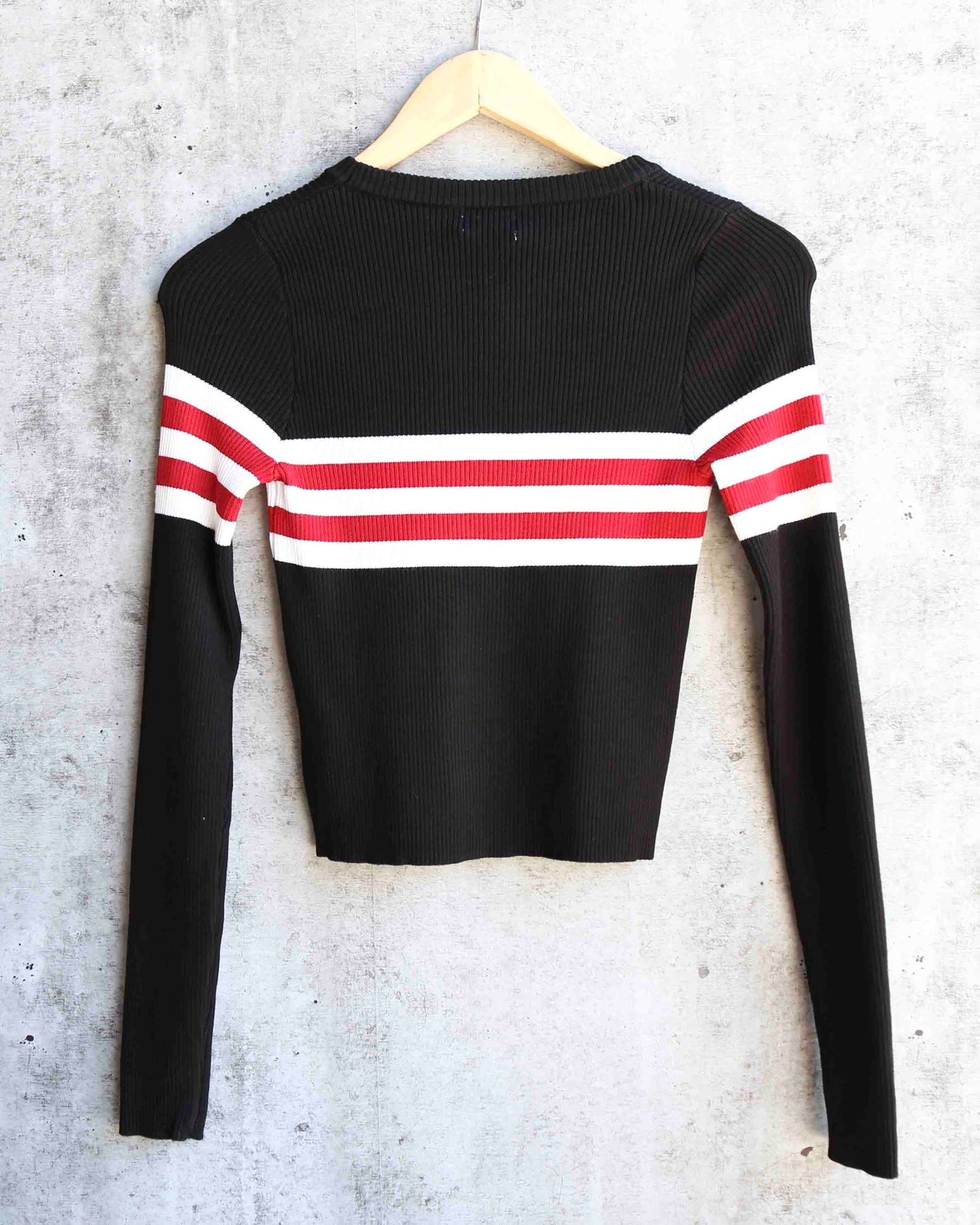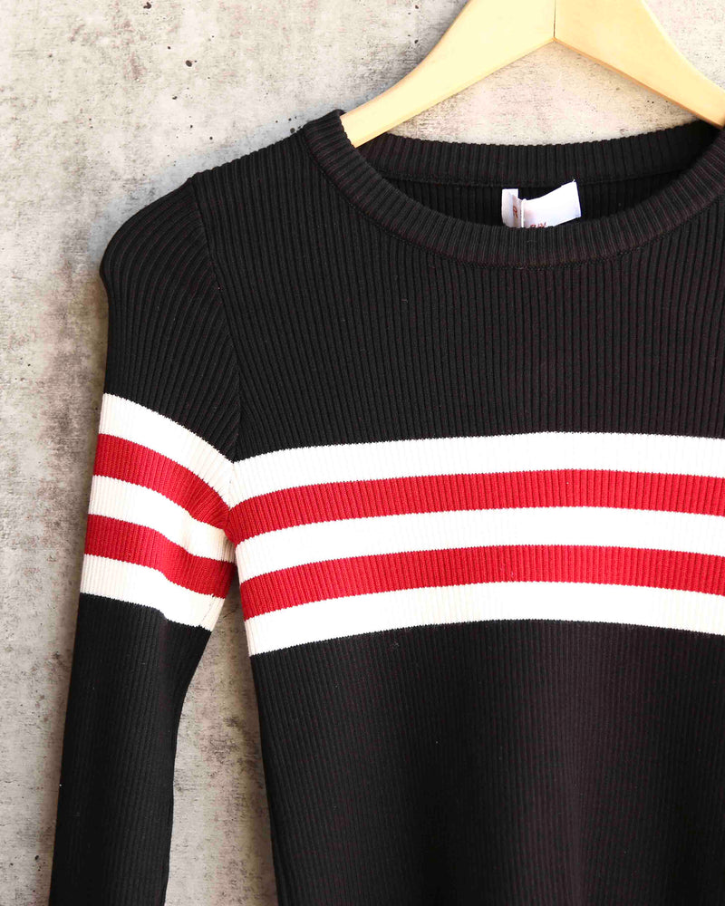Easy Does It Stripe Knit Ribbed Sweater in Black