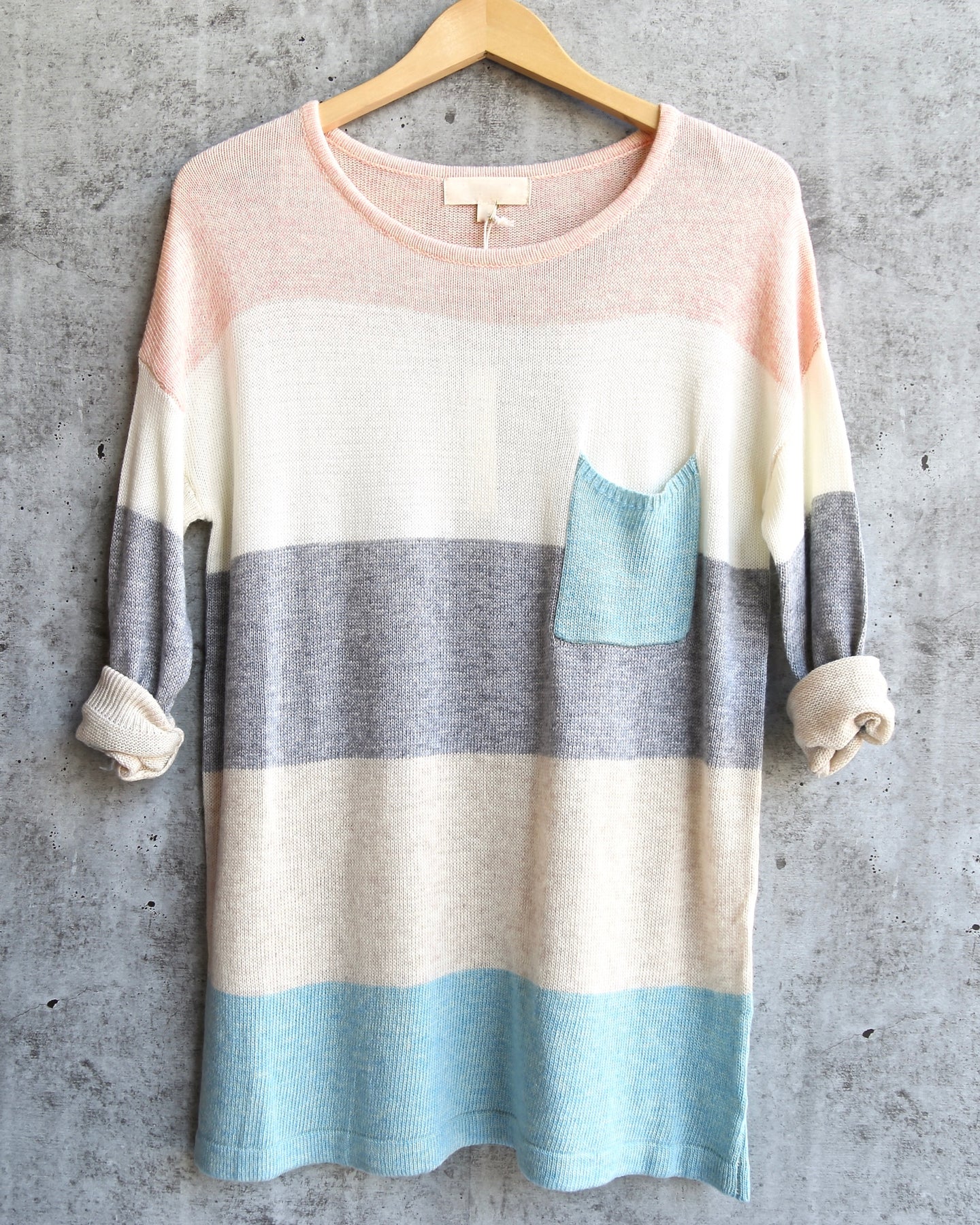 Eden Long Sleeve Color Block Sweater Tunic in Blue Multi