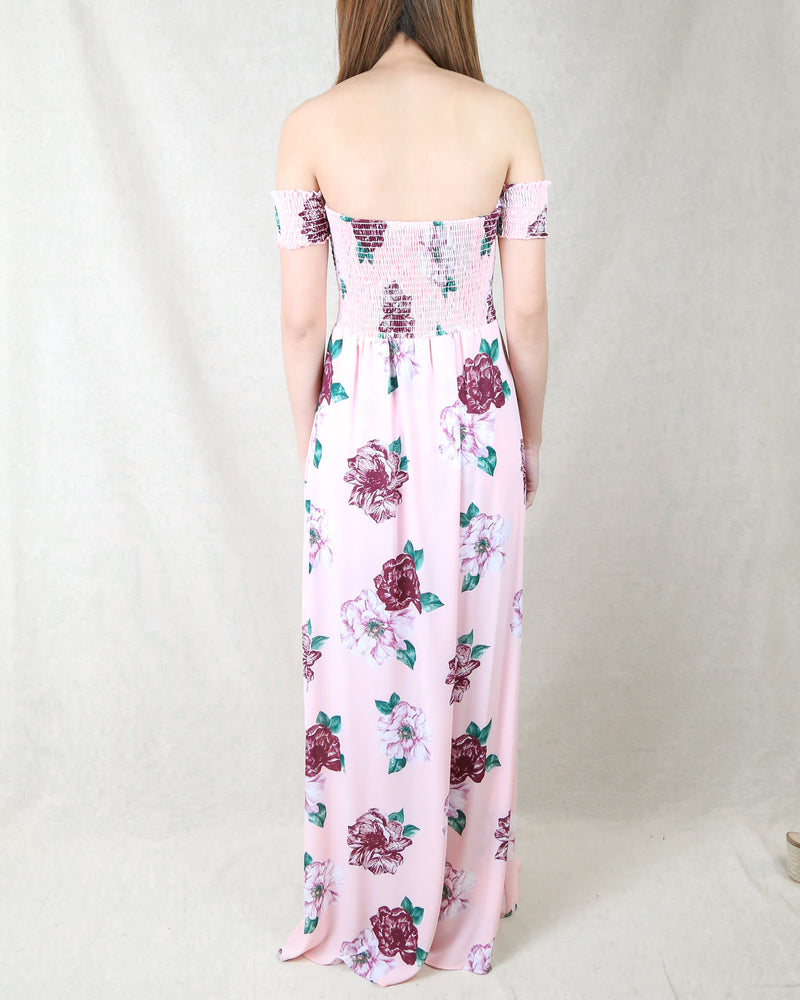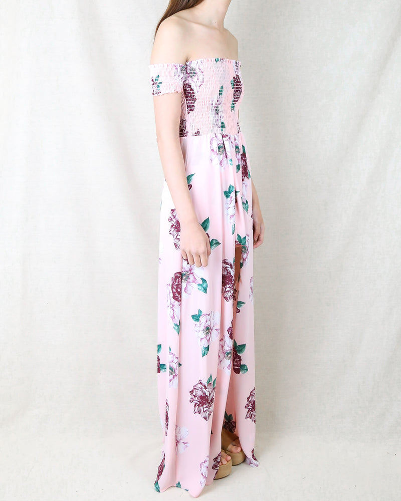 The Ellie high low romper is perfect for the summer or spring time when you have a special occasion! This romper features a smocked bodice, off the shoulder fit, and a floral print throughout. Pair this romper with some sandals and your favorite hat and bag for a perfect look!