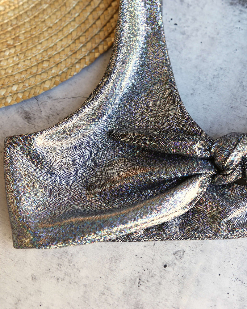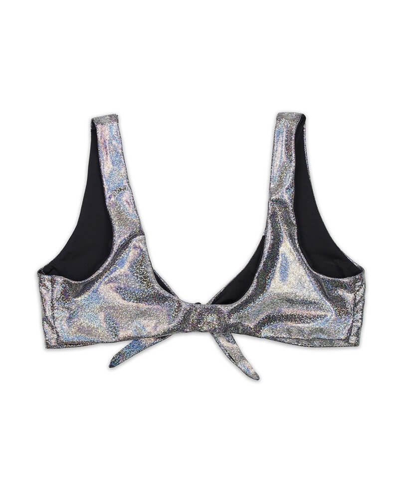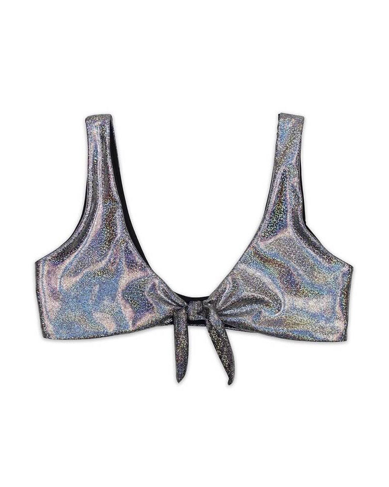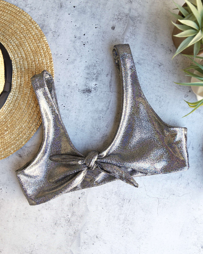 Emma Seamless Tie Front Bikini Top in Metallic Smoke