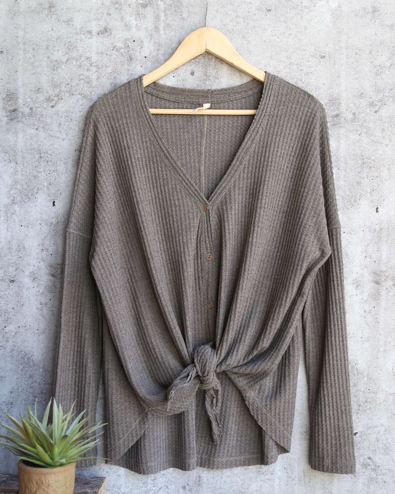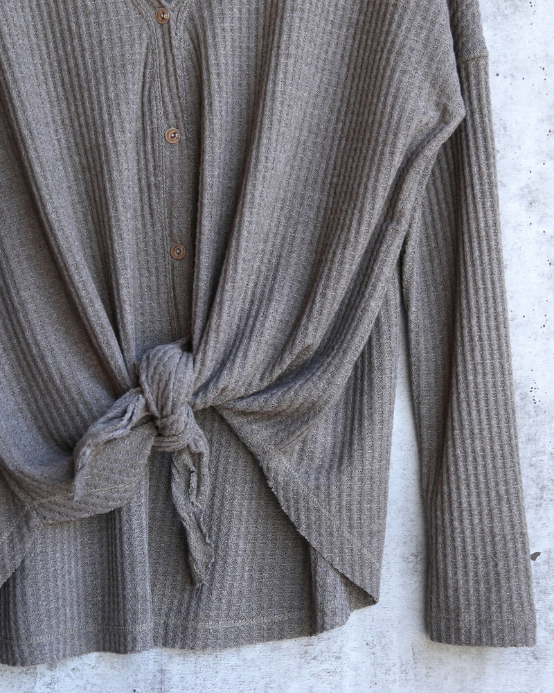 Everyone loves a comfy sweater to throw on for any outfit, being basic enough to go with almost any bottom. This oversized fit sweater features a button front, optional tie in the front, and a waffle knit texture for the thermal feel that is perfect for a day out in fall! Pair this top with some jeans and booties for the perfect winter or fall look.