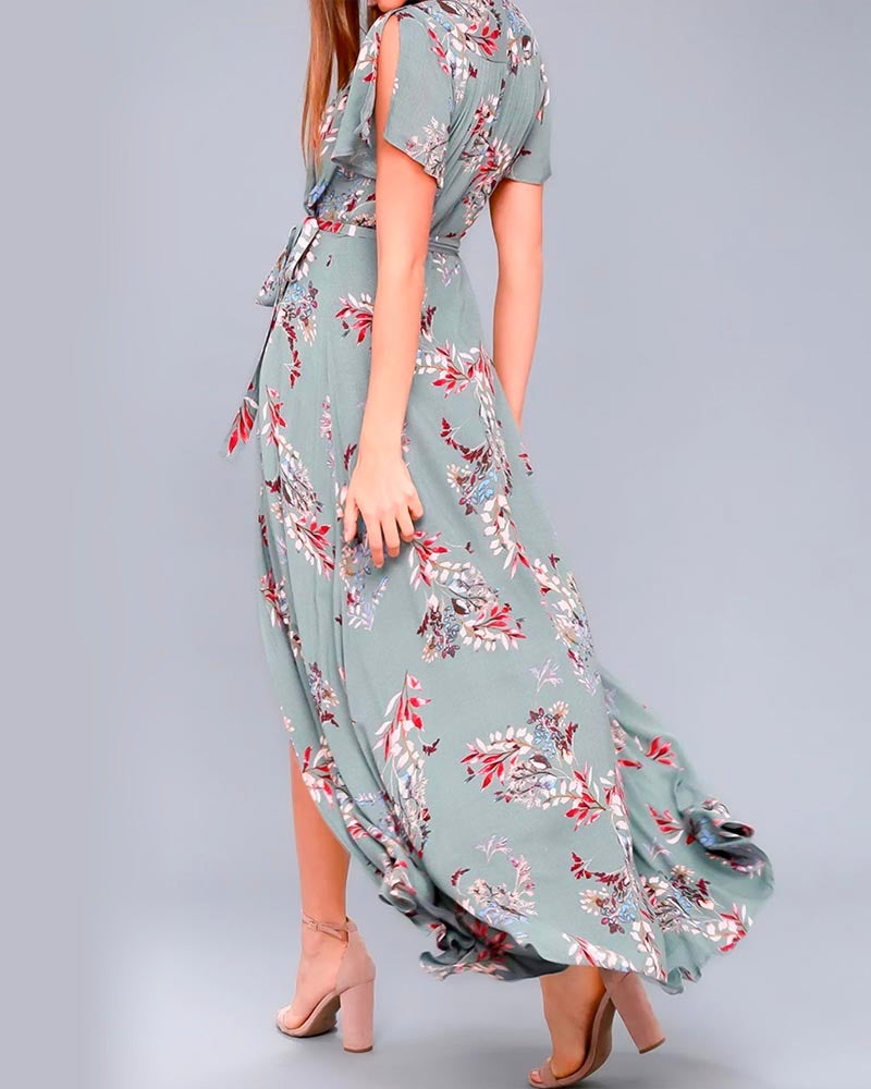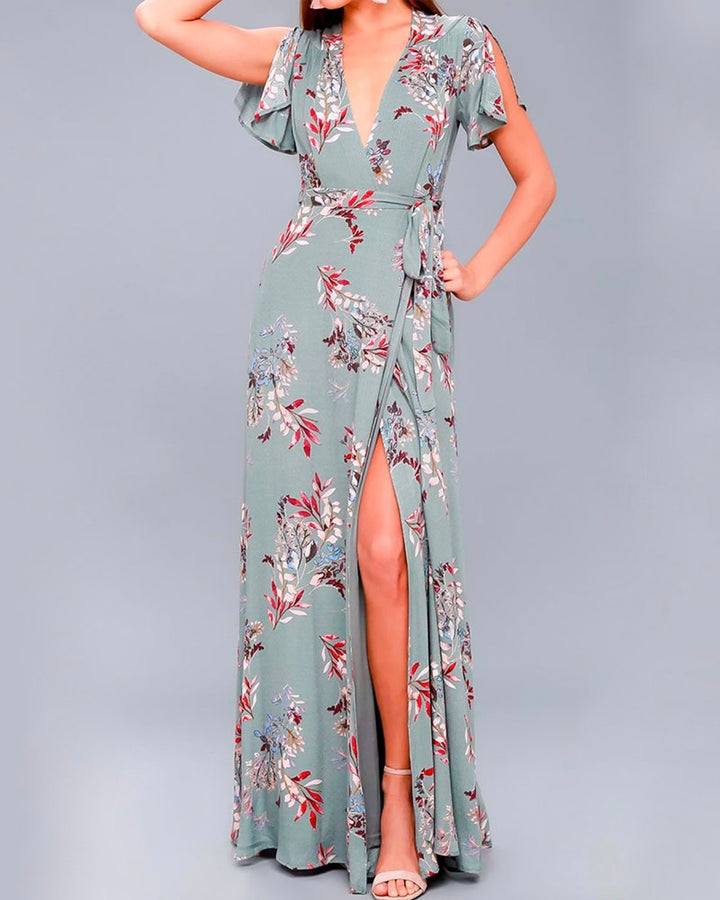 A maxi dress is always the best choice when wanting to stay classy yet cute during the summer and spring seasons! This maxi dress features a v-neck, tie waist, and a slit at the thigh. Pair this dress with some heels and you're good to go!