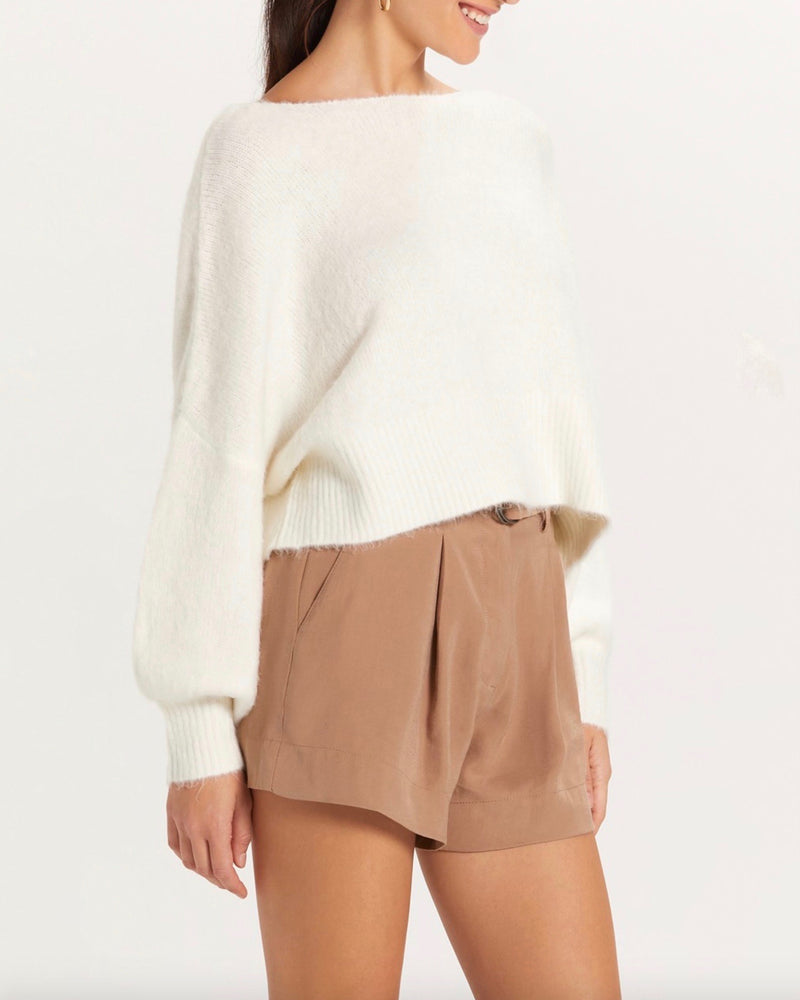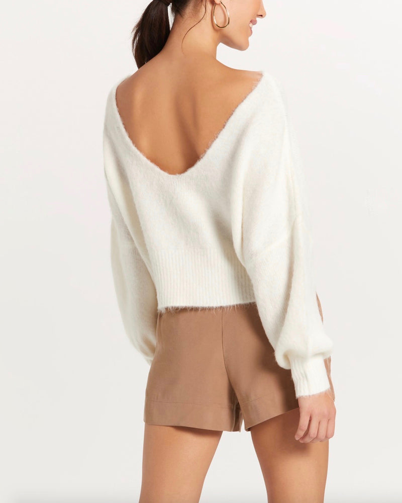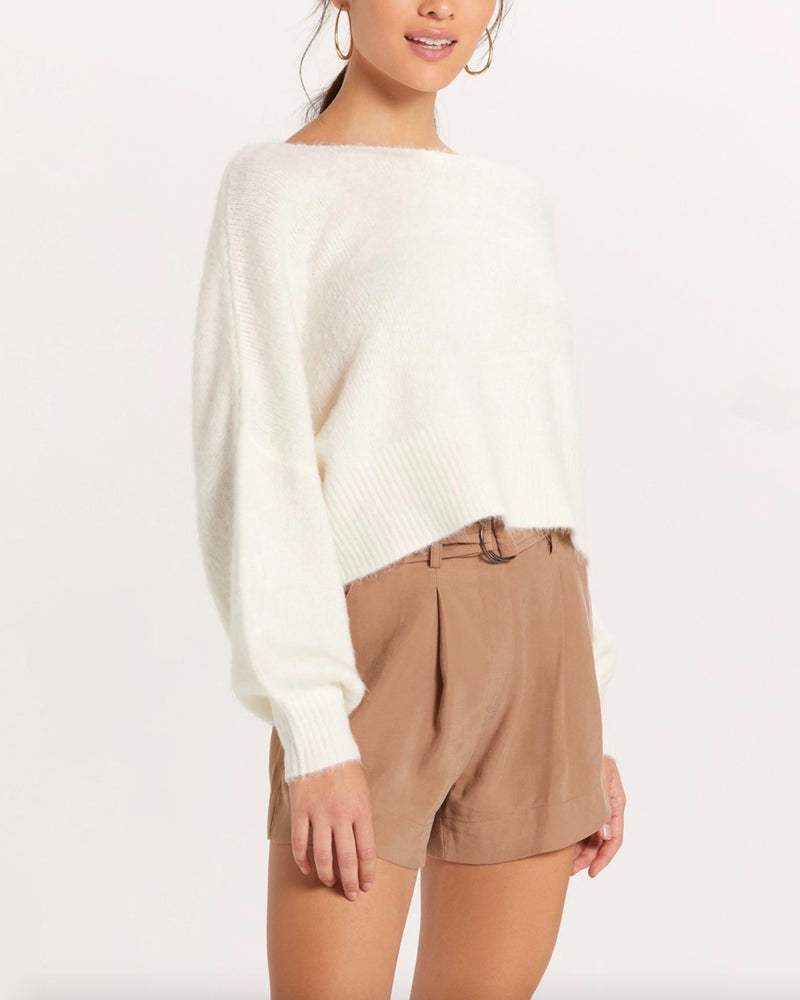 This fuzzy sweater is guaranteed to keep you warm and comfy this fall and winter season! Featuring an off the shoulder fit, scoop neck back, and dolman sleeves, this sweater would look cute with some distressed jeans and some ankle booties!