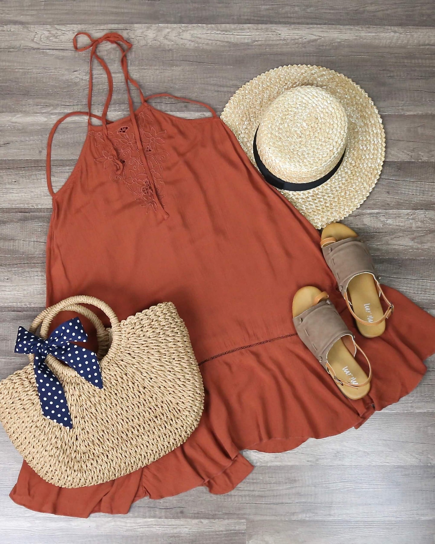Survive a heat wave in this swingy tunic dress from Free People, accented with embroidery and openwork trim for an airy look. This ruffle-hem style is finished with strappy details at the sides and back. Wear this with your favorite pair of espadrilles for a cute outfit for the summer!