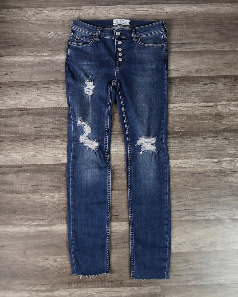 Free People - Reagan Distressed Button Front Jeans in Light Denim