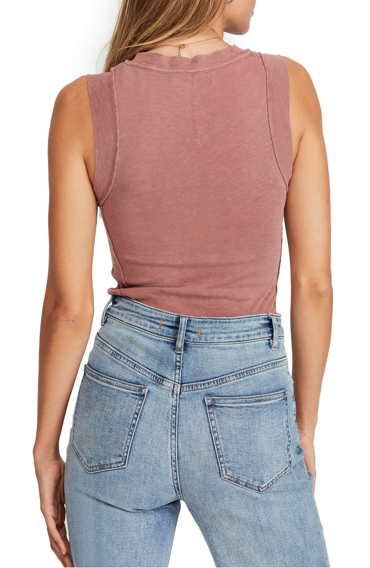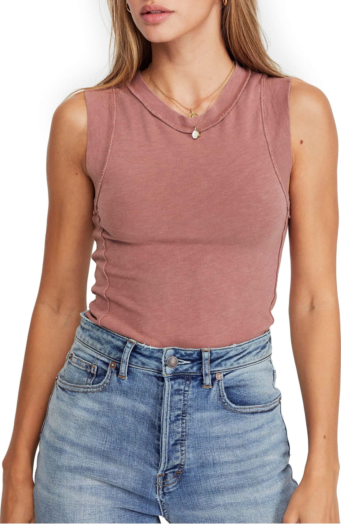 Effortless lightweight cotton tank featuring cap sleeves, exposed stitching, and a rounded hem.