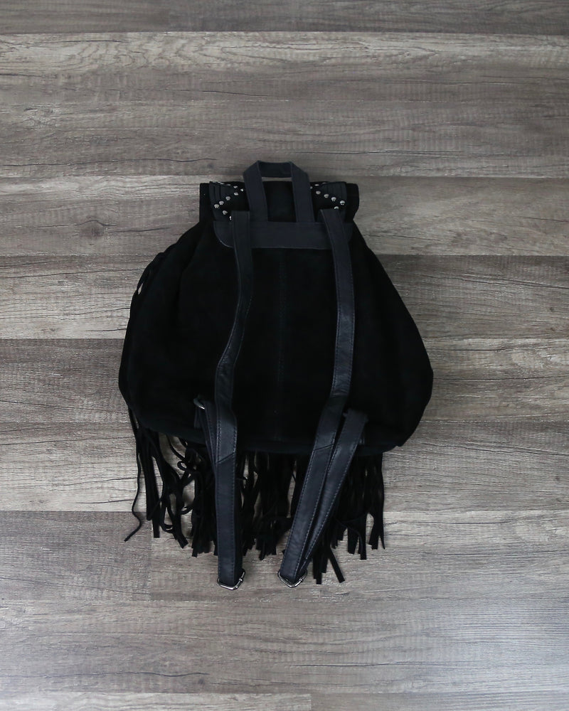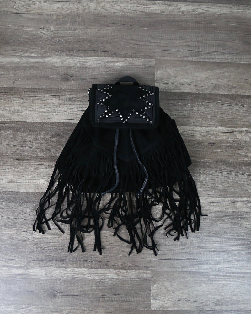 This backpack is perfect for festivals or whenever you feel like dressing up boho! Featuring a studded detailing on the flap and fringe detailing throughout, this backpack is super cute with any outfit!