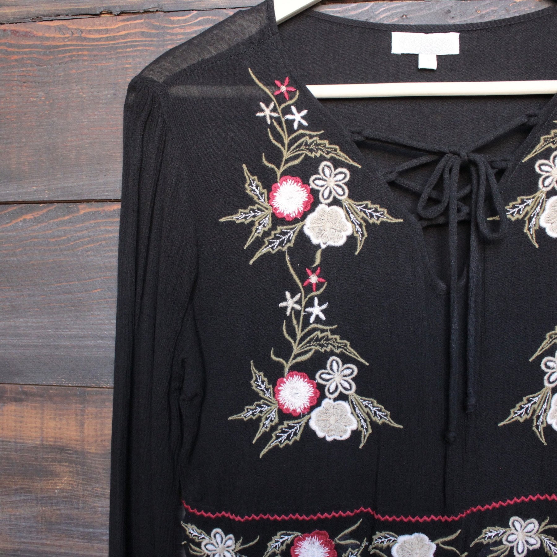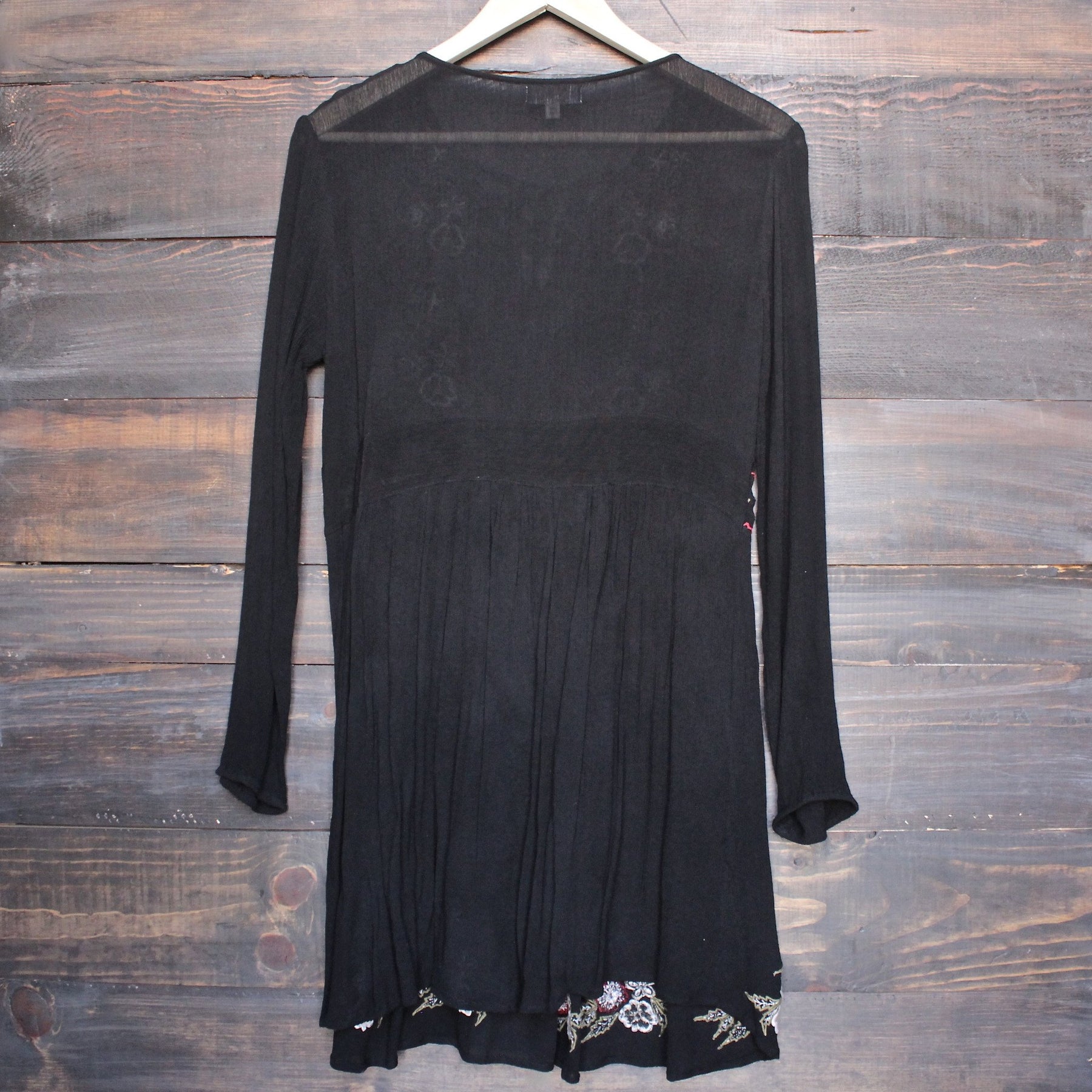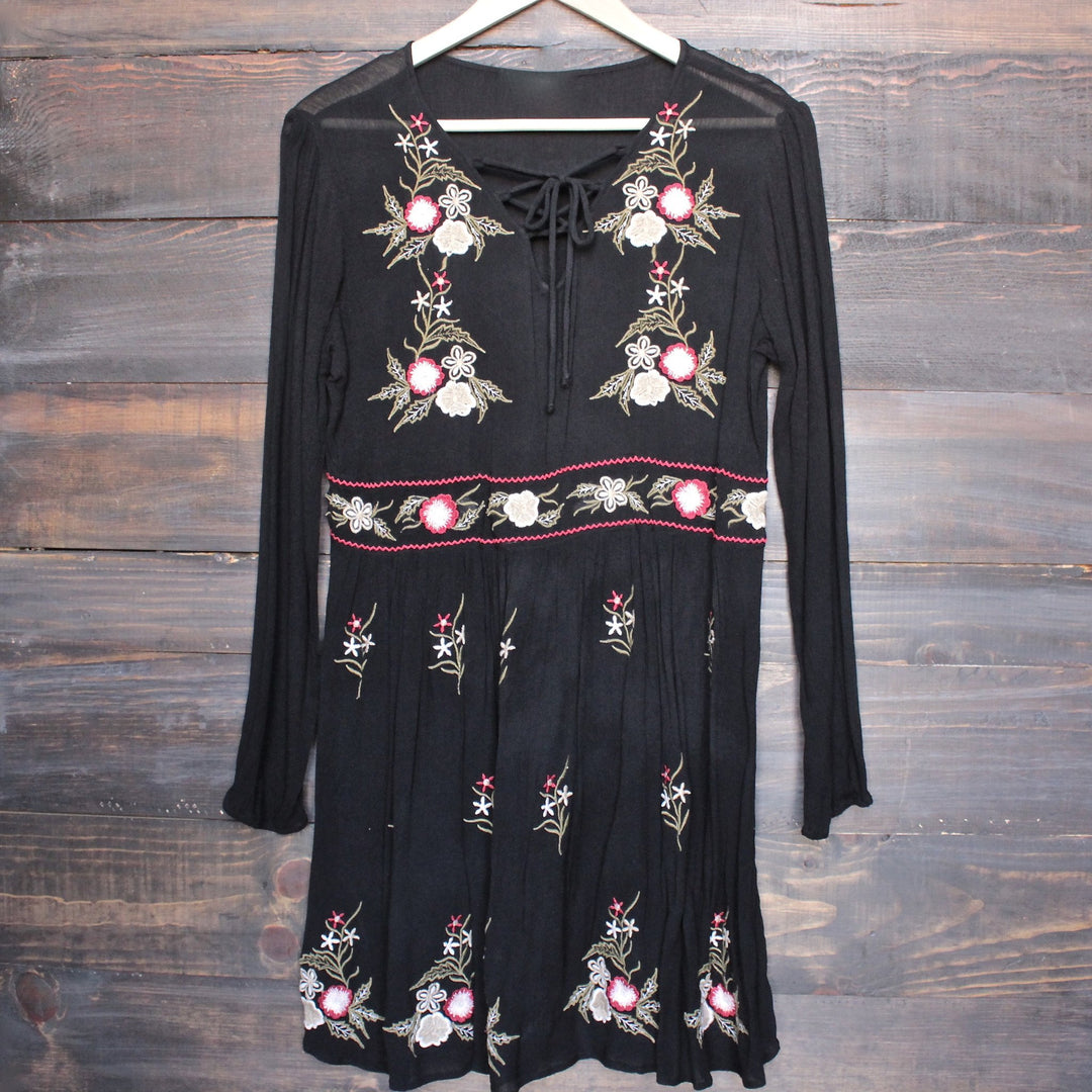 Final Sale - Gauzy Embroidered Boho Dress in Black