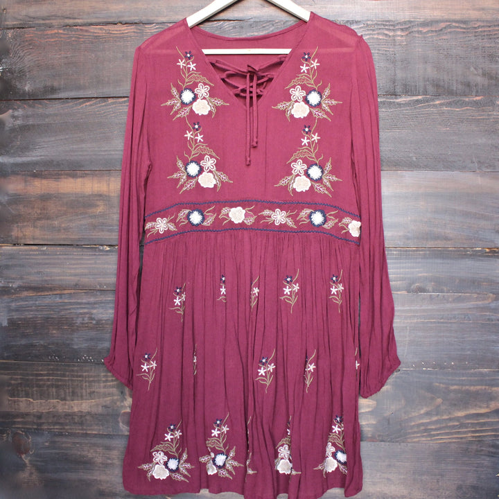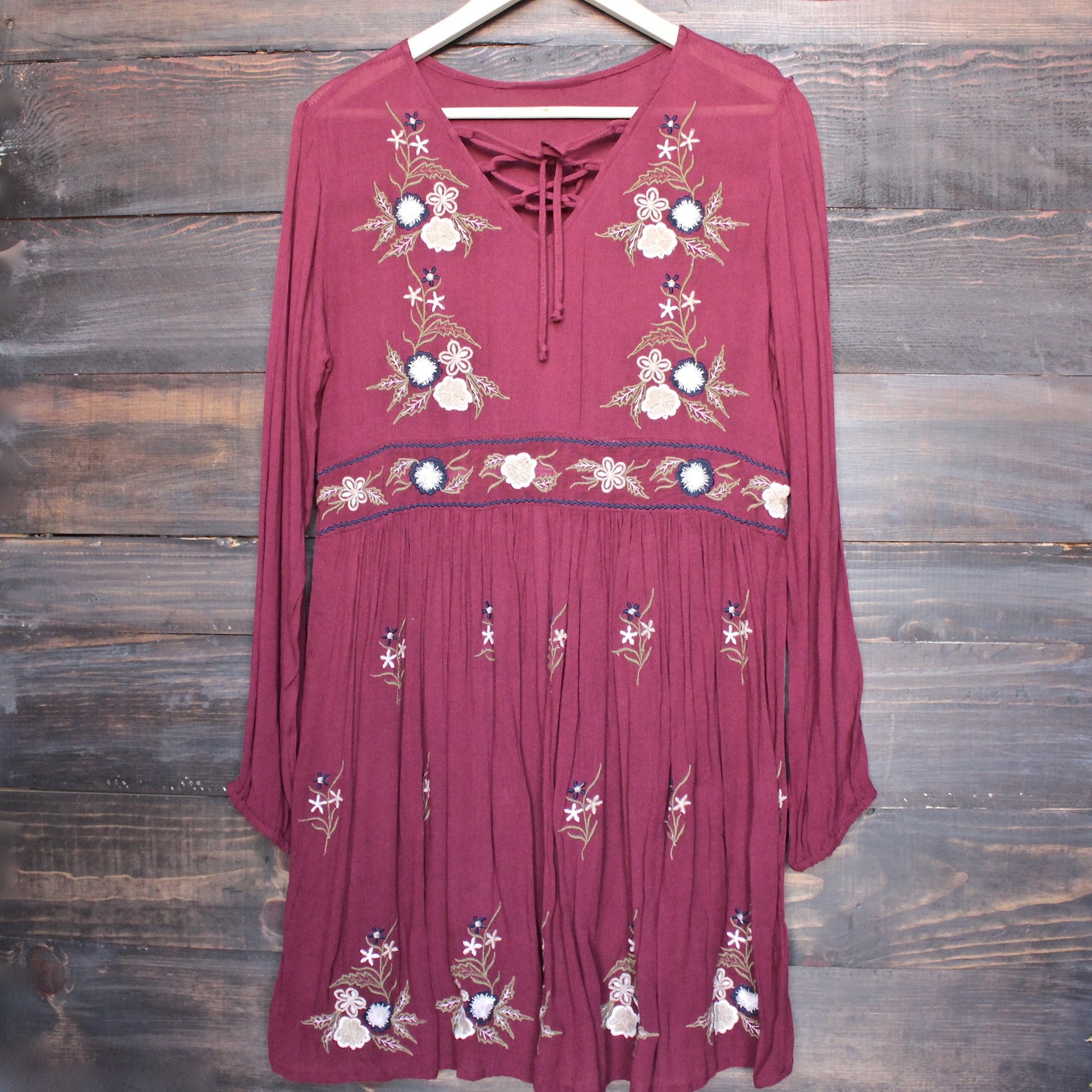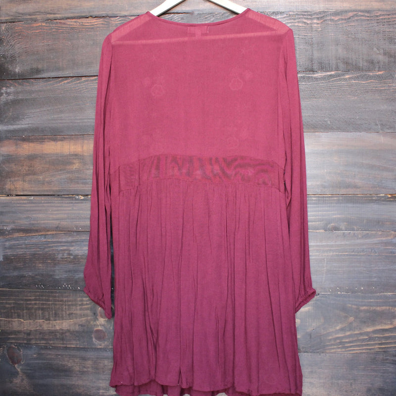 gauzy embroidered boho dress - burgundy - shophearts - 1