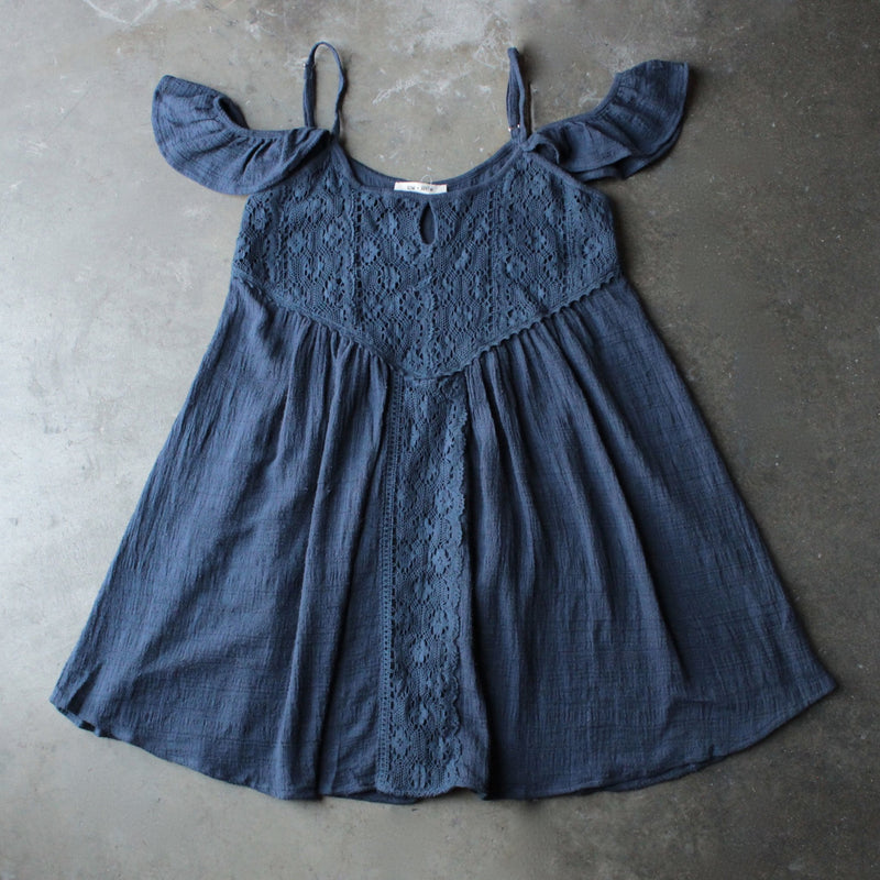 gauzy flutter sleeve boho dress - navy - shophearts - 1