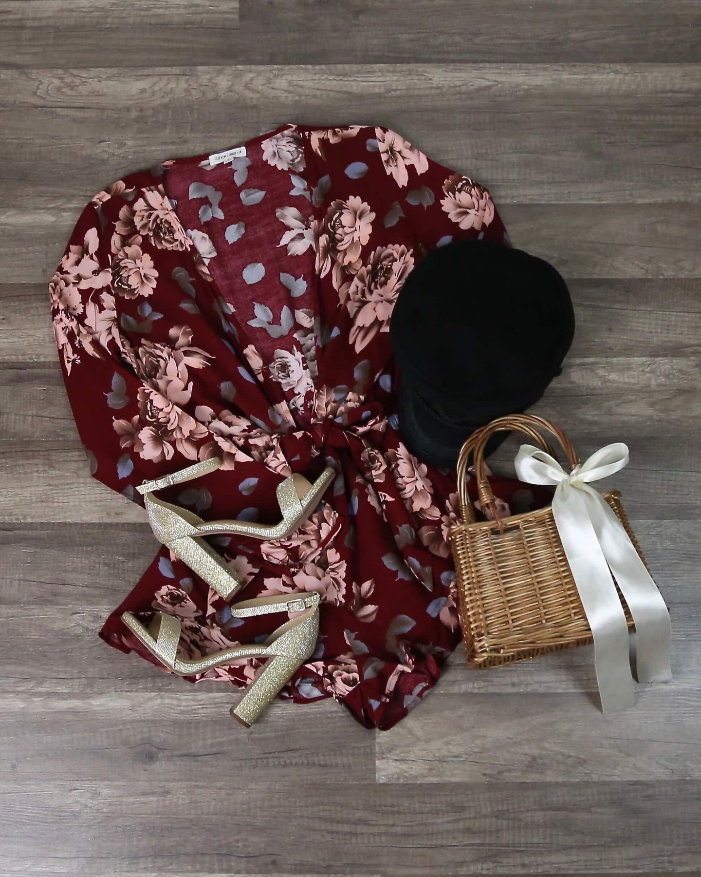 girl crush long sleeve floral romper with ruffle hem in burgundy - shophearts - 7