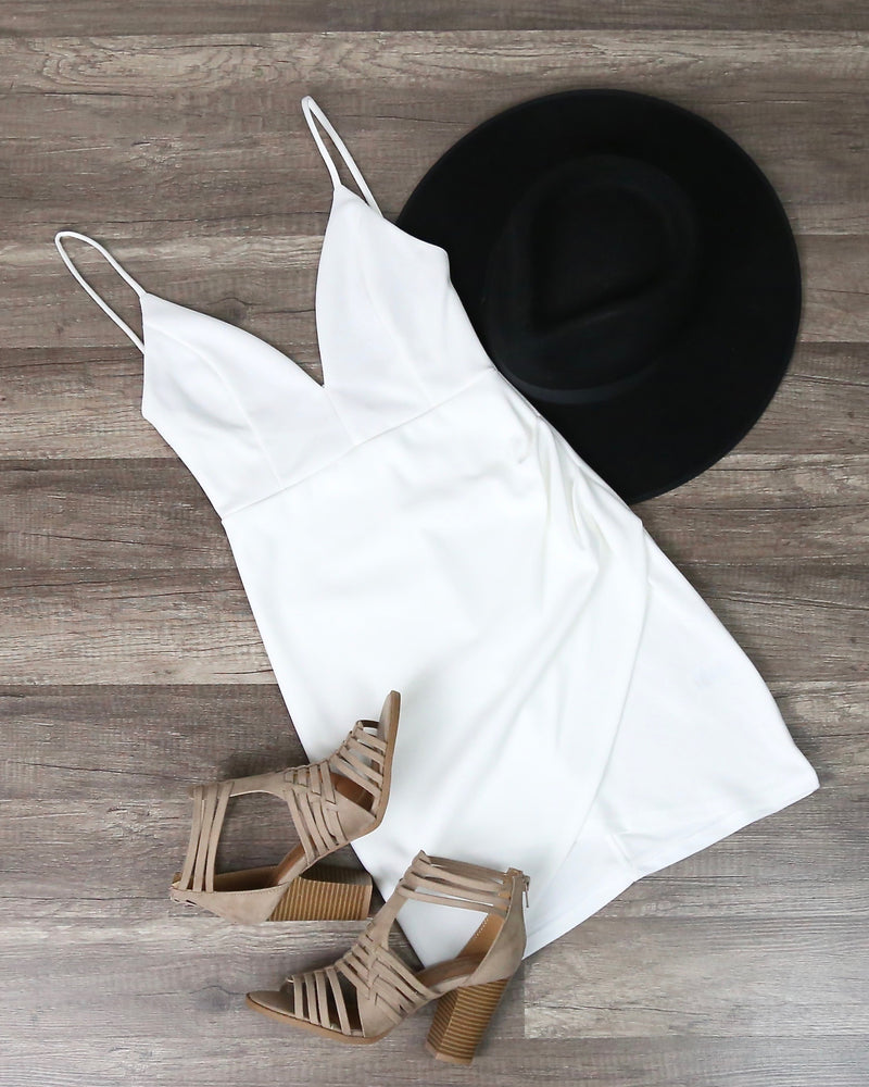 Girls' Night Out Deep V-Neck Wrap Dress in Ivory