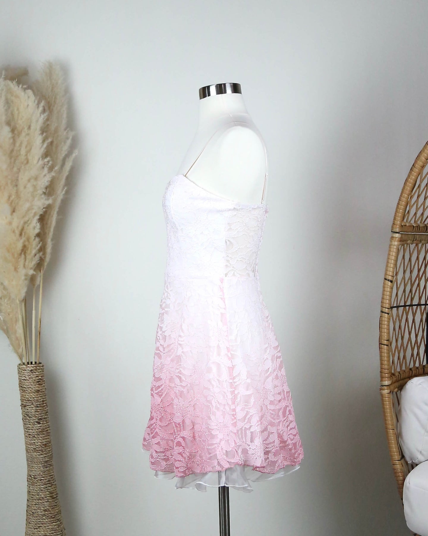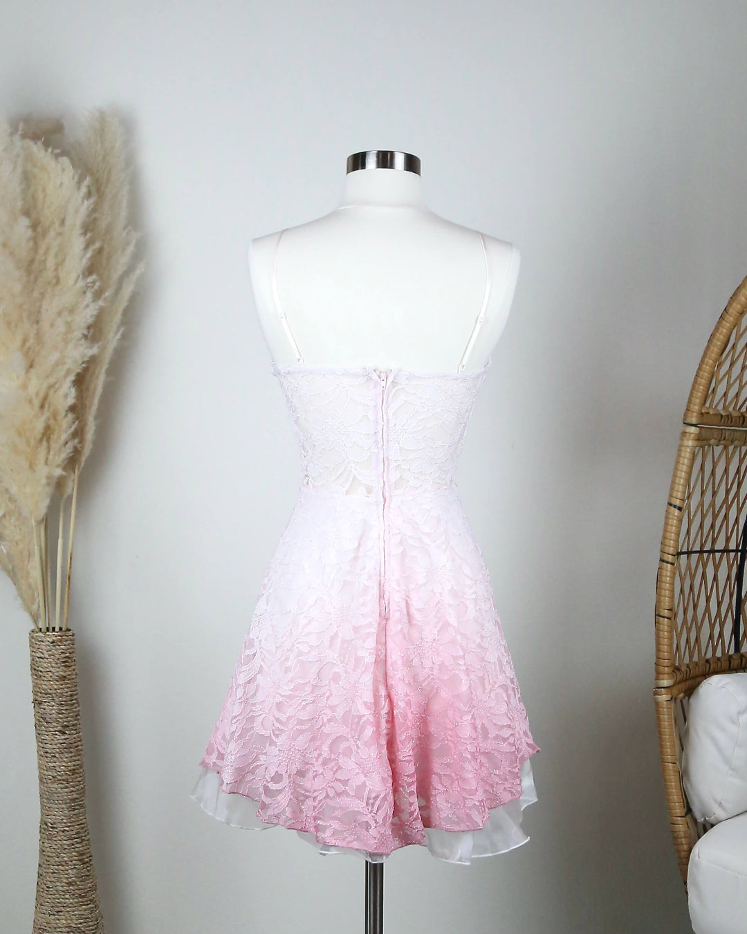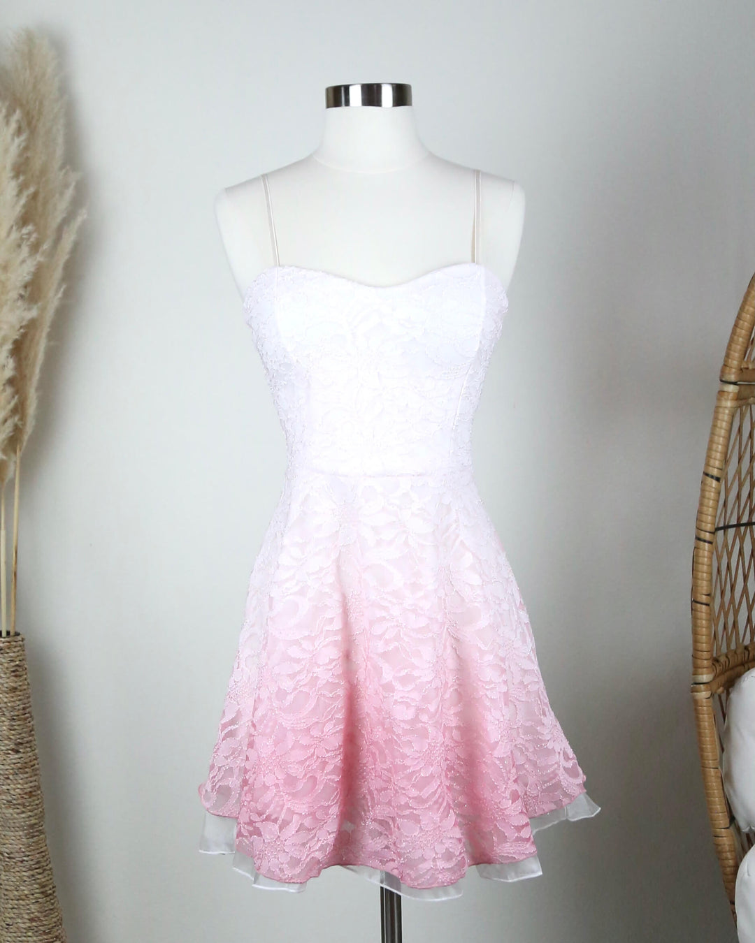 Final Sale - Glits & Glams Lacy Floral Dip Dye Fit and Flare Dress in Pink