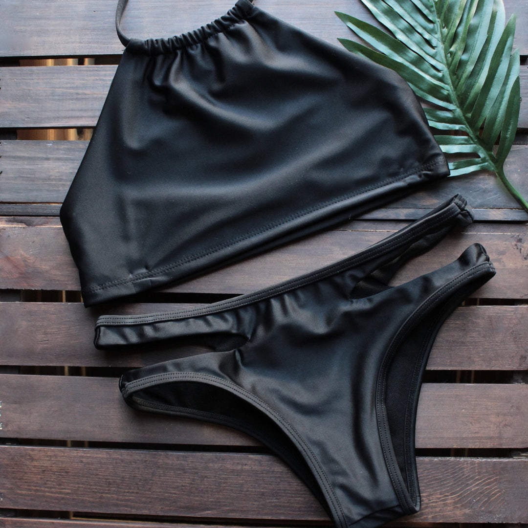 Final Sale - High Neck Solid Bikini With Side Cut Bottoms
