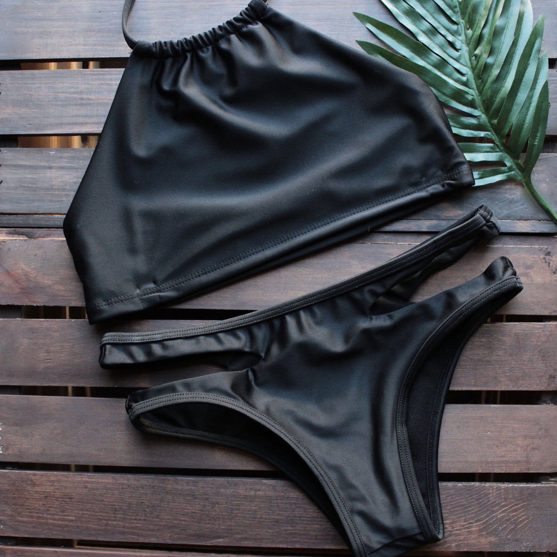 high neck solid bikini with side cut out bottoms - shophearts - 1