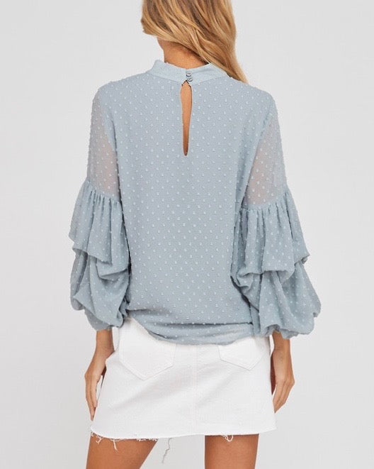 Looking for a unique formal top? Well, this is the top for you! With its unique bubble sleeves and swiss dot pattern, this blouse is not like any ordinary blouse. Pair this with your favorite pencil skirt!