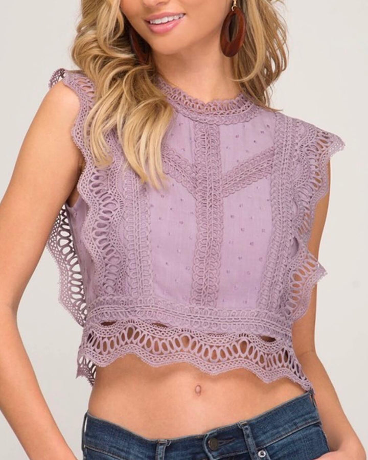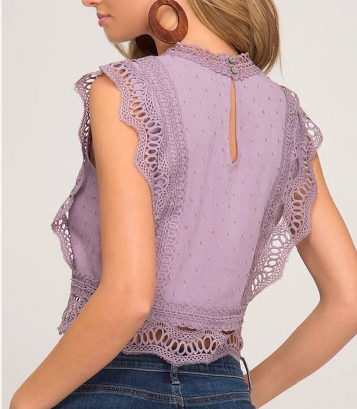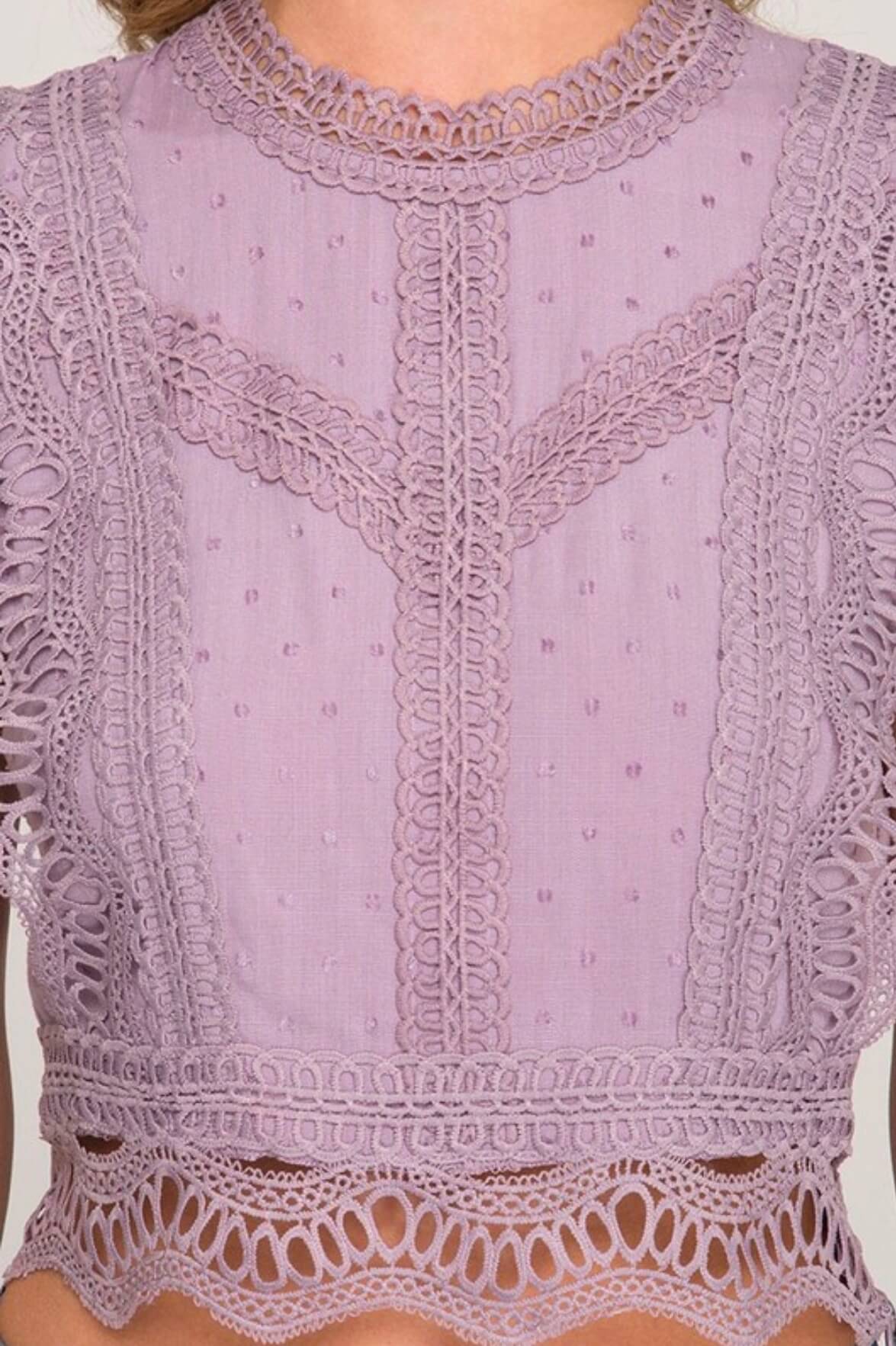 An amazing crop top for date nights, especially since it features a polka dot texture with lace detail and a side zipper.