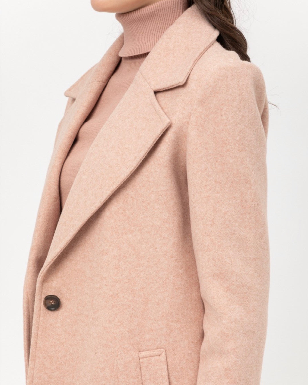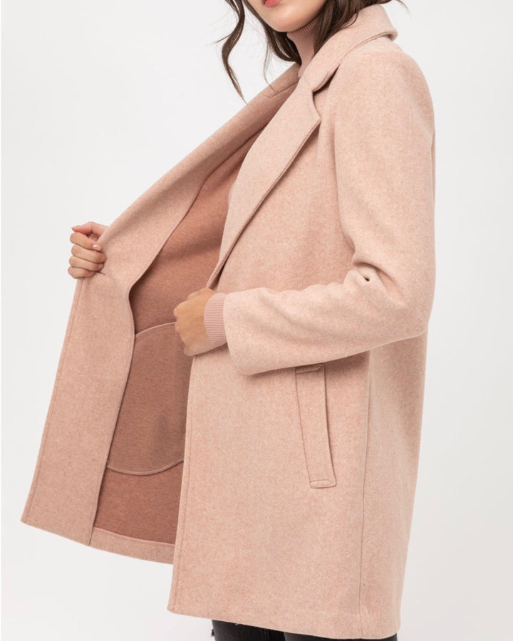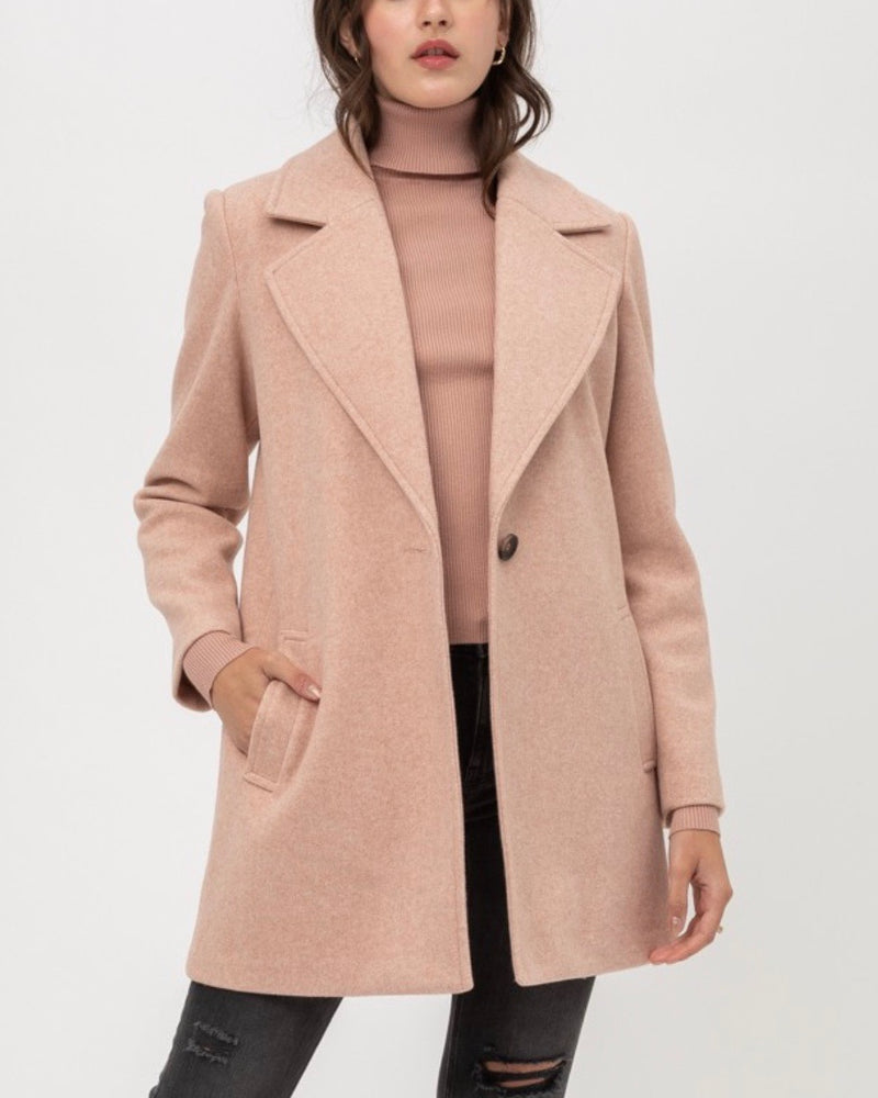 This coat is perfect for the fall and winter season! This coat features a JQ Fleece, front pockets, foldover neckline, and one button. Throw this coat over any outfit to make it a sophisticated look!