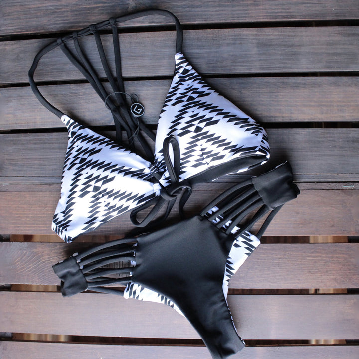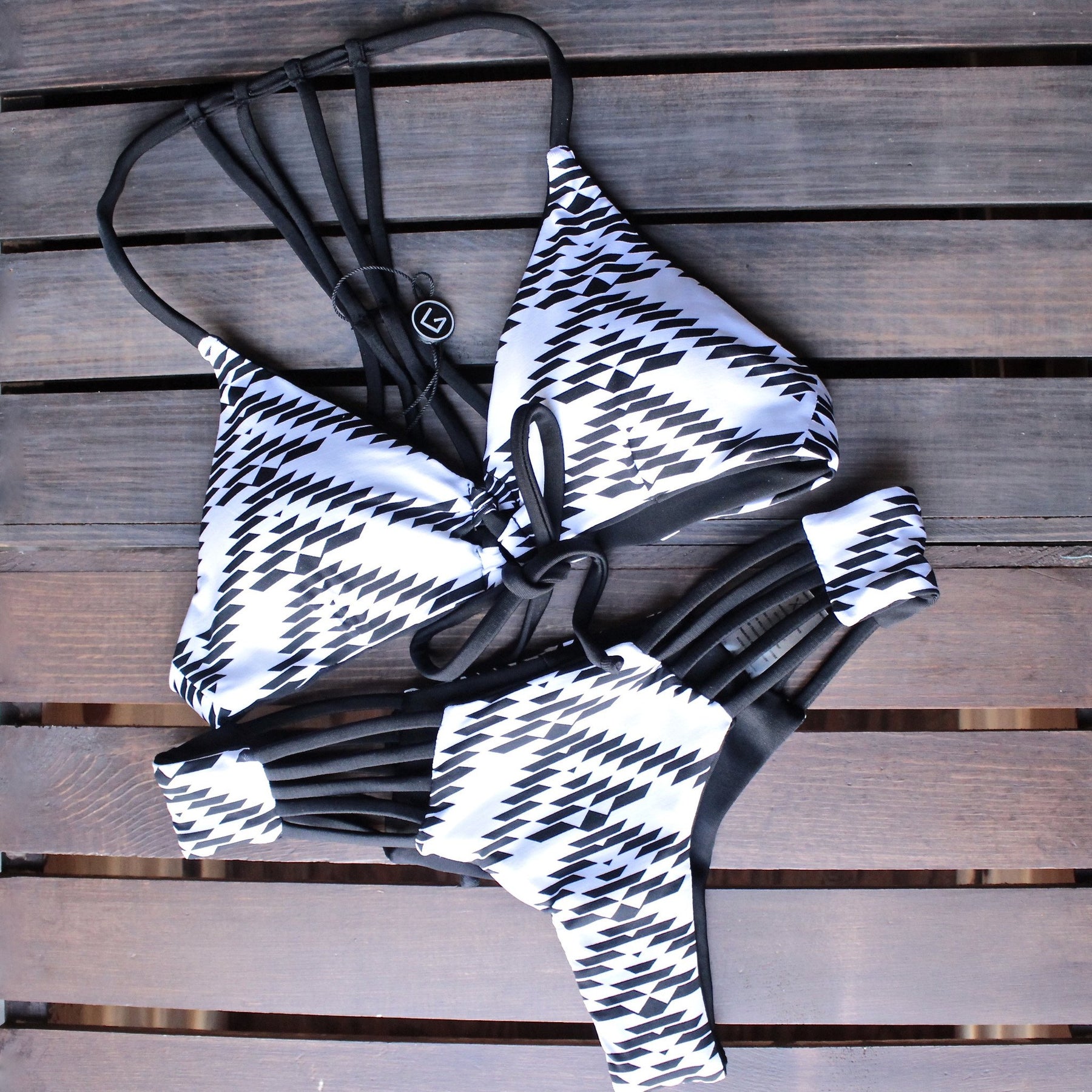 The bottom comes in a sexy Brazilian-cut design in a low-rise design with playful straps on each front and back side.
