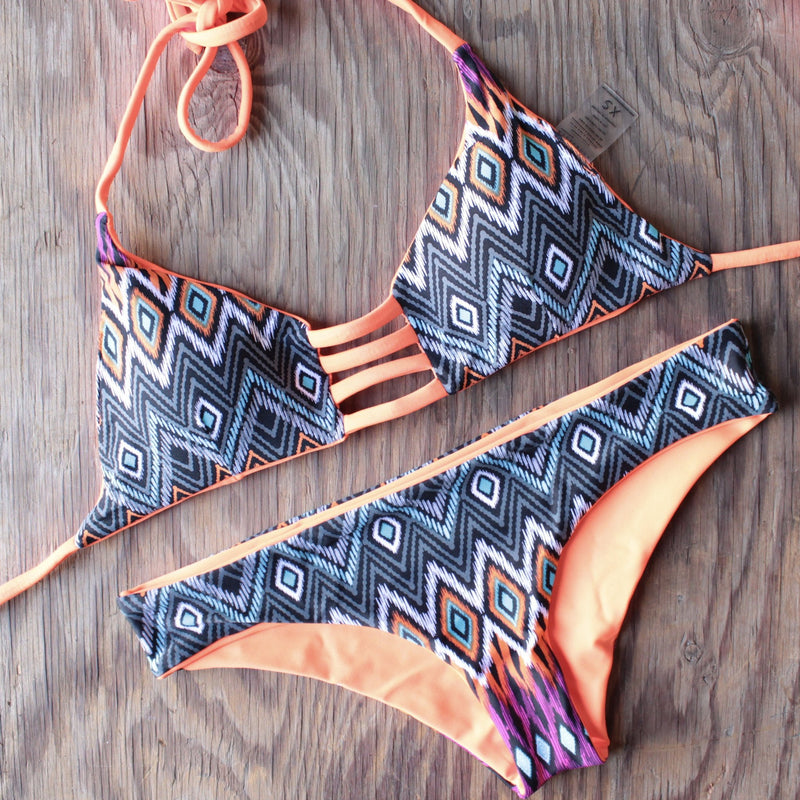 The top features three bands that flawlessly synch your cleavage together. If you’re looking for a halter that is as equally flattering and supportive as it is edgy, this is the top for you. It also has padding and ties in neck and back to create a perfect bust lift.