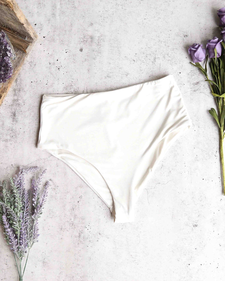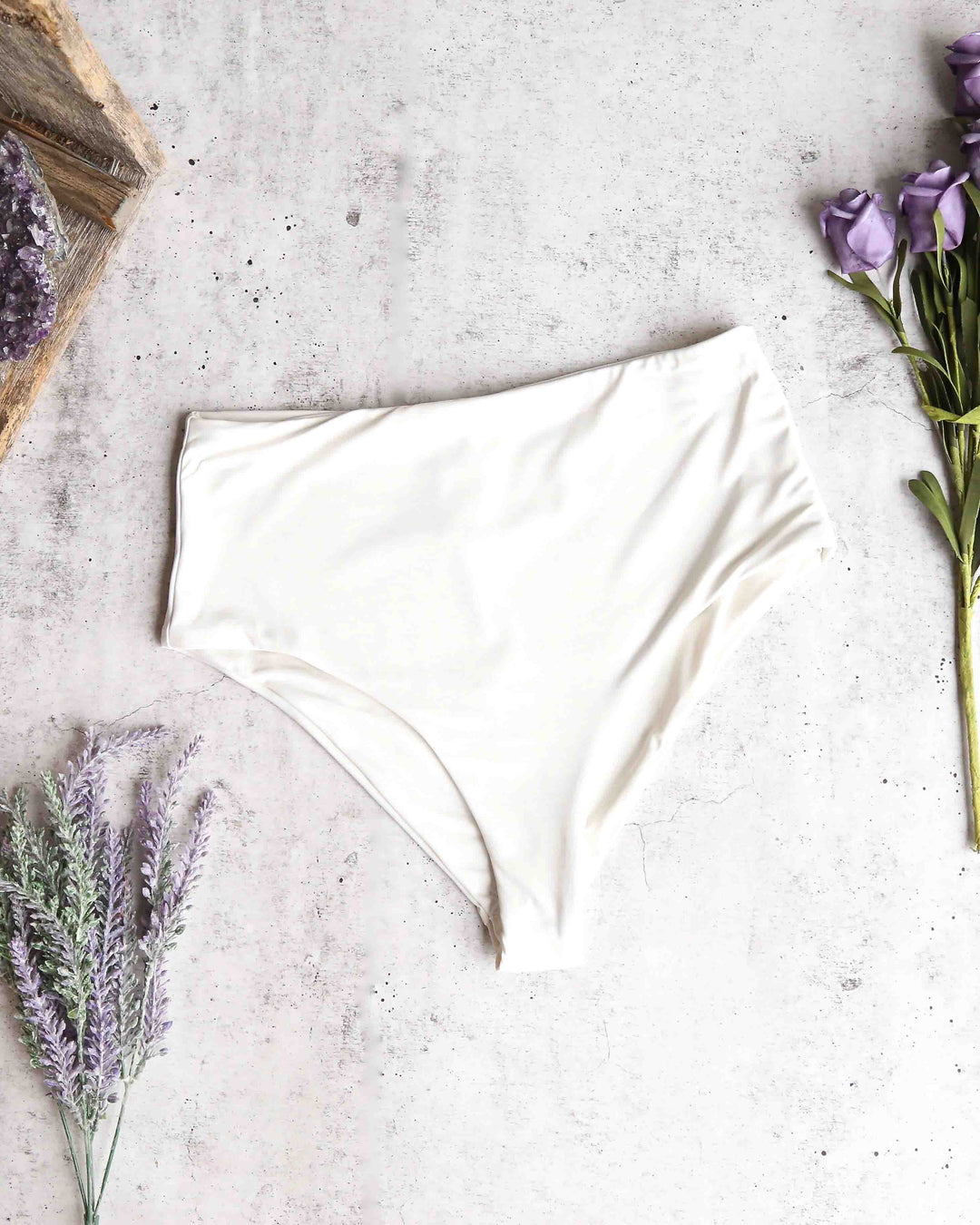 Kris Seamless Moderate Coverage High Waisted Bikini Bottoms in Ivory