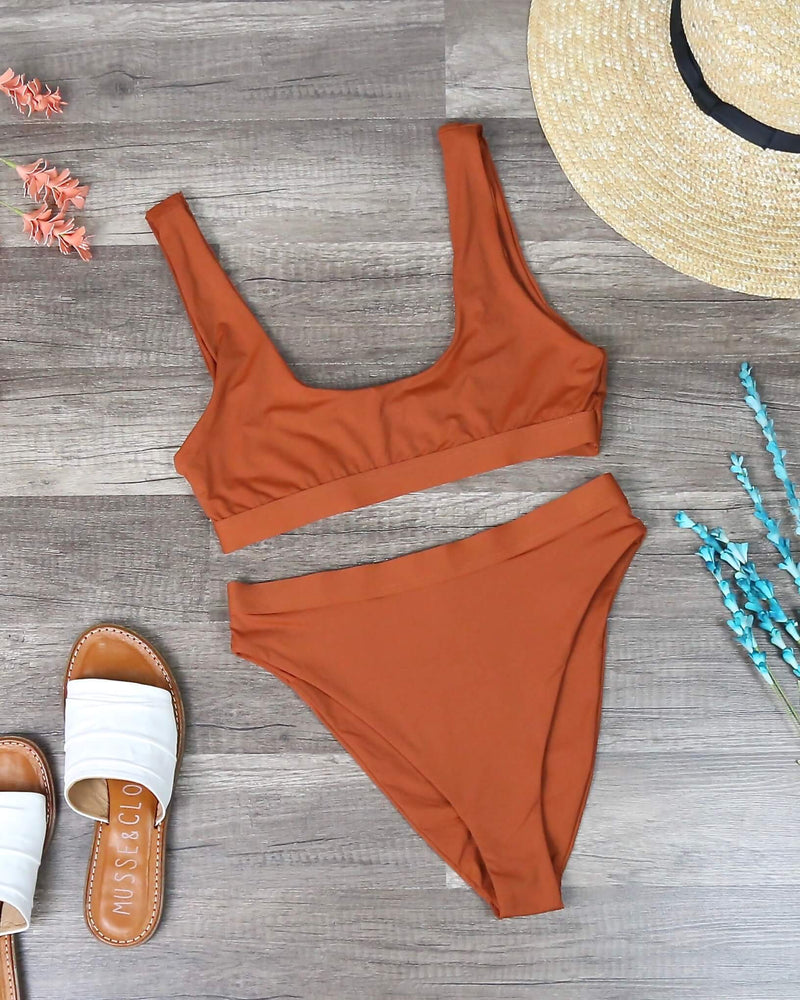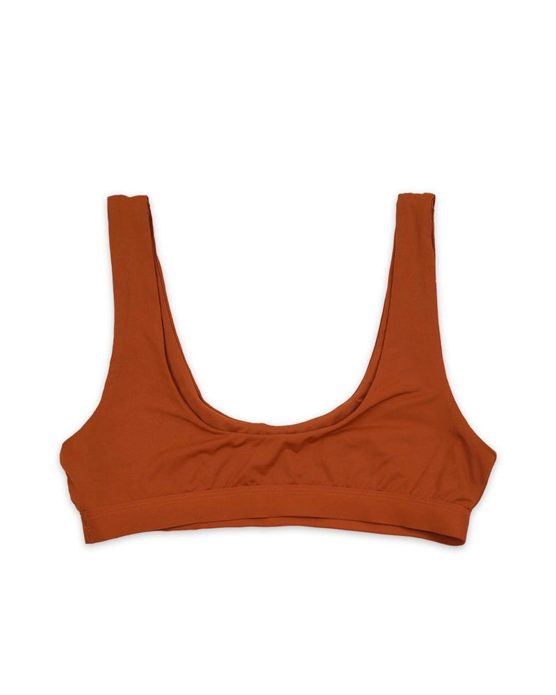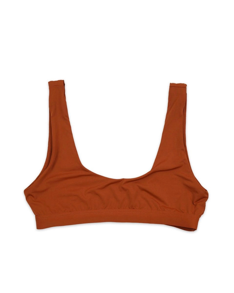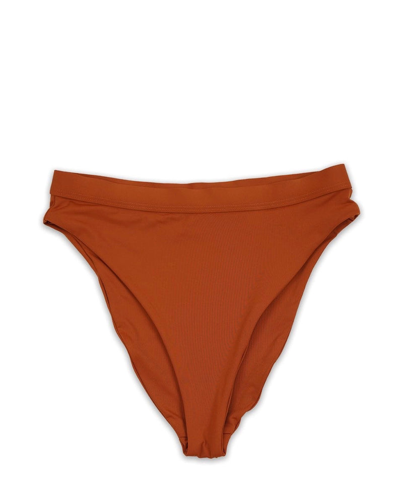 Sporty Swim Top + Banded High Waist Cheeky Bottom Separates - Rust
