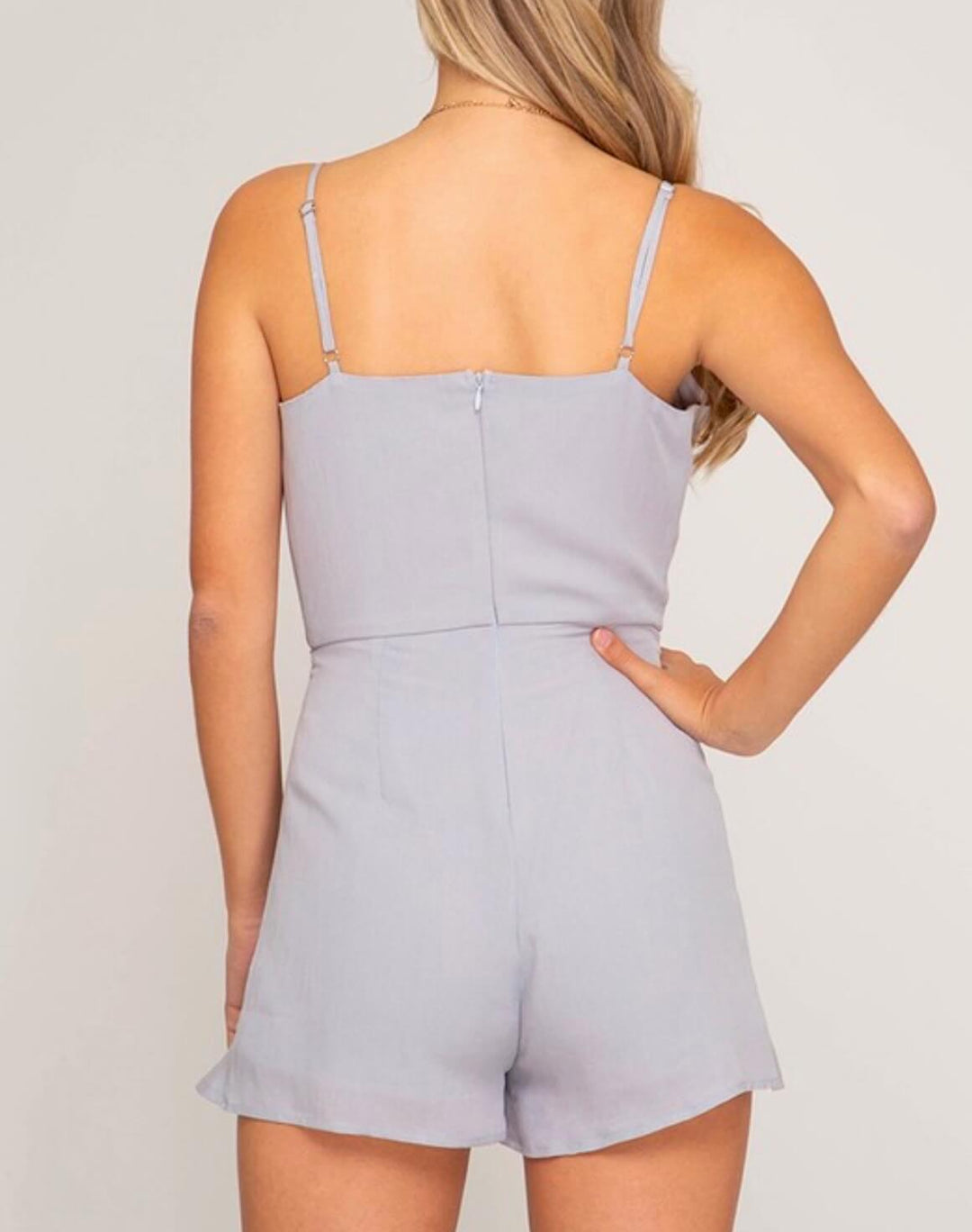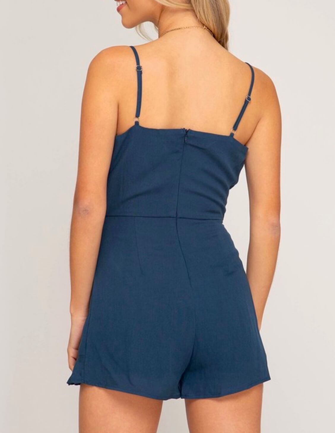 The ideal romper for spring/summer that features a v-neck and skort illusion with the ruffled hem! Also includes adjustable straps!