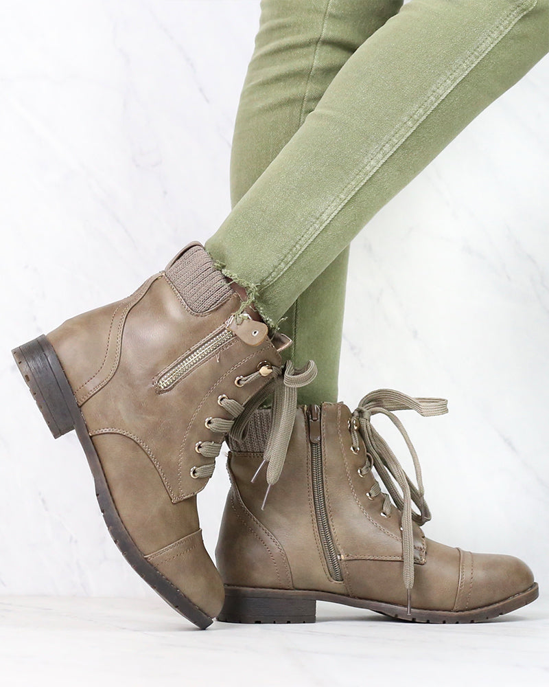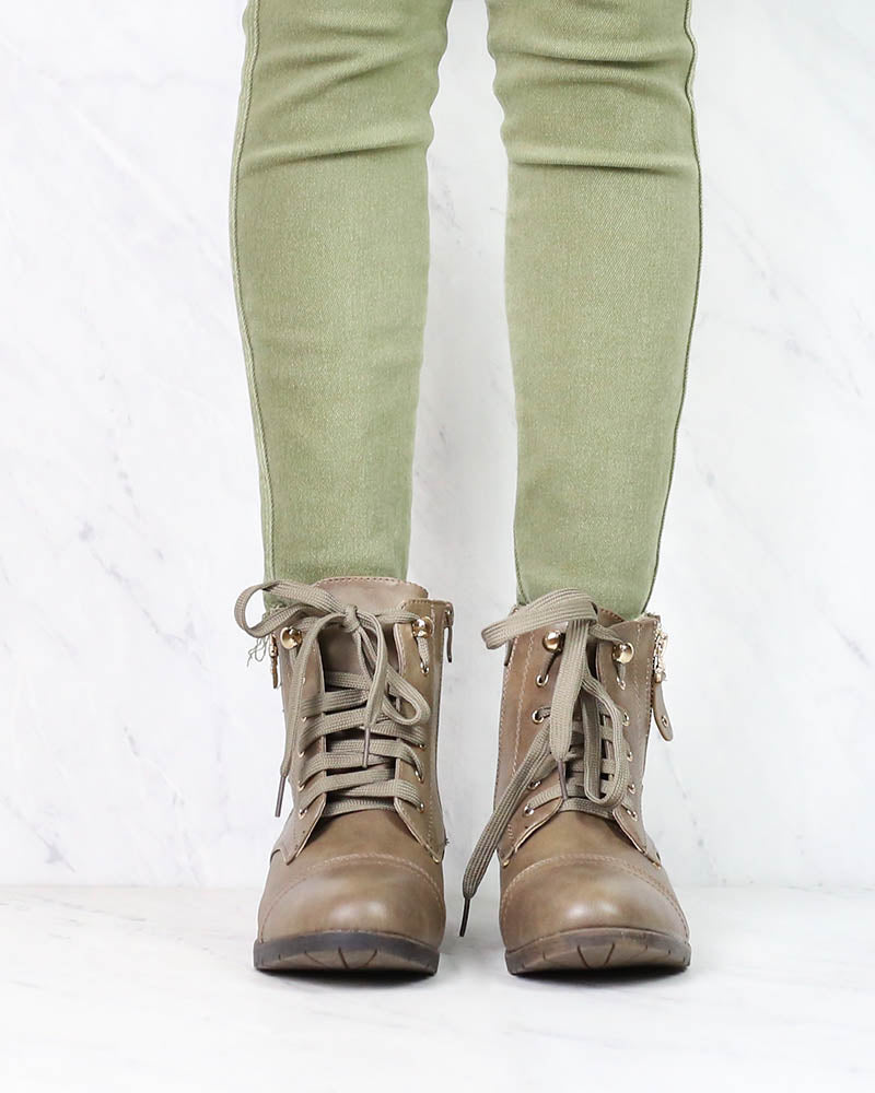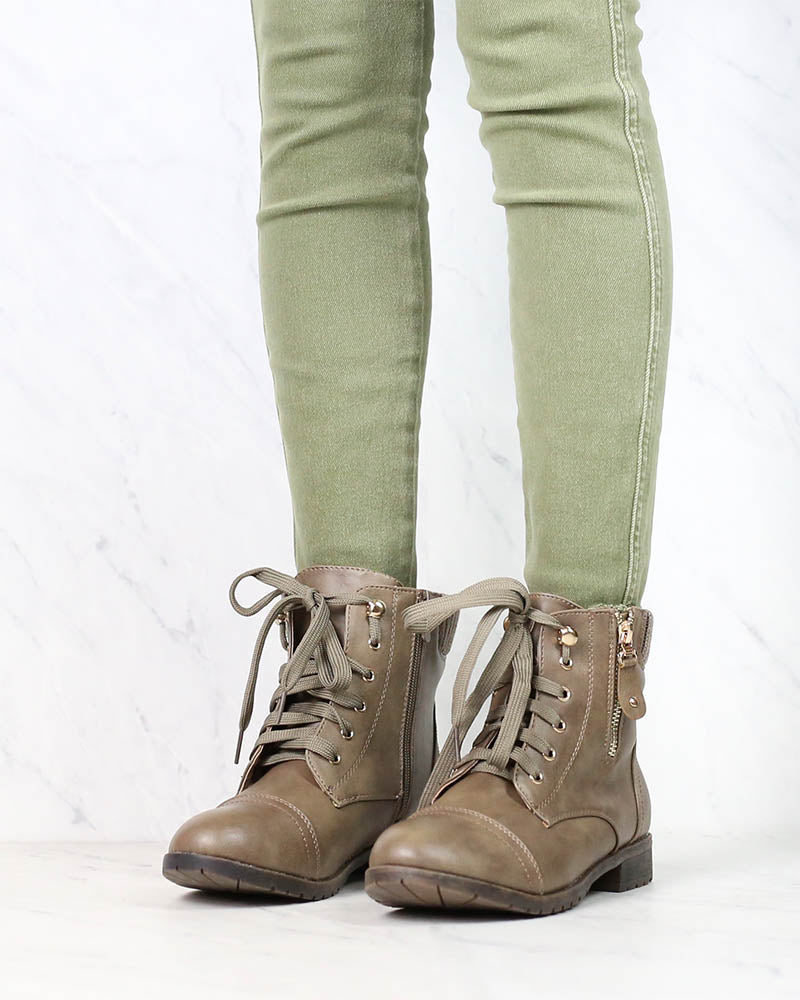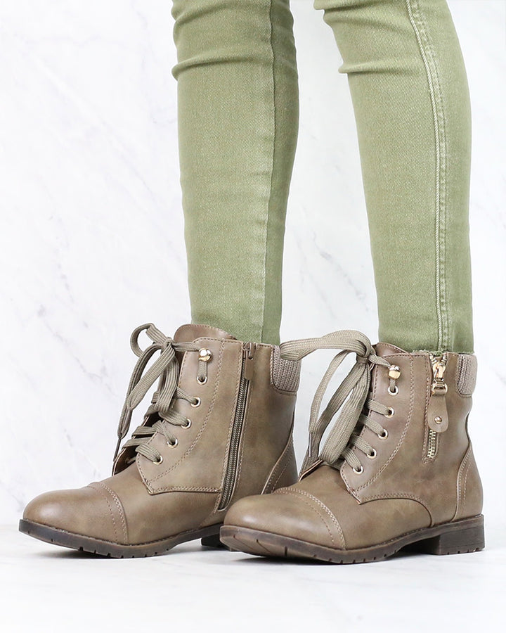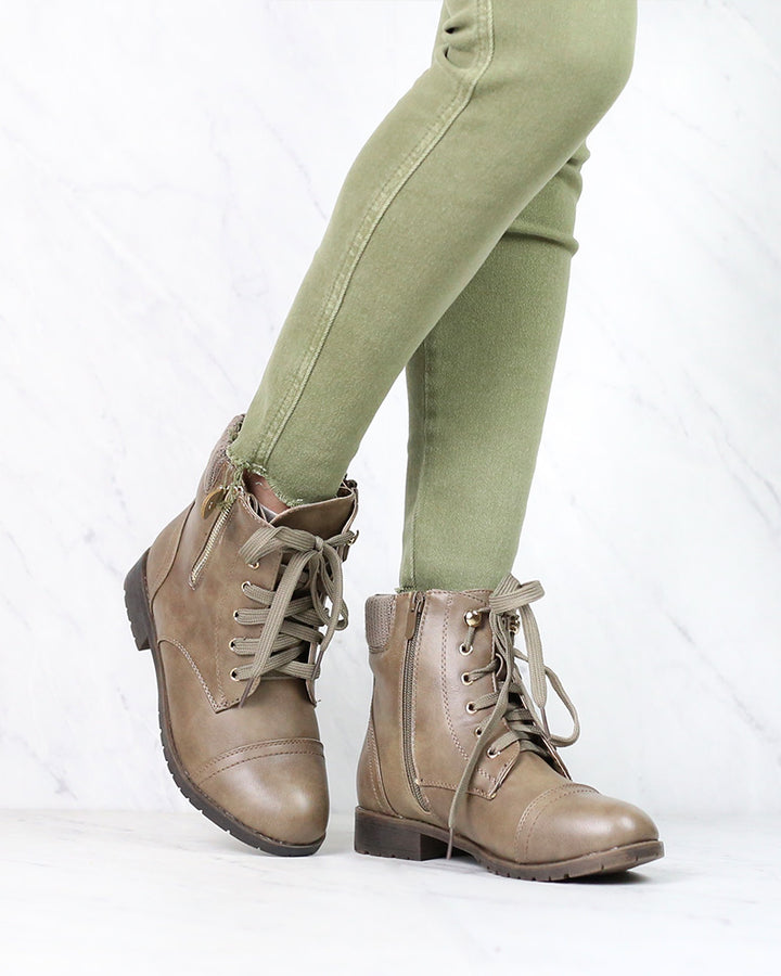 These military style boots feature a faux leather upper with a lace-up front and man-made sole.