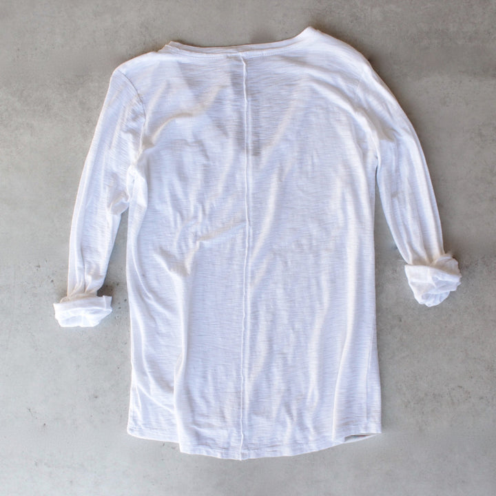 This gorgeous soft cotton/modal blend shirt will leave you wanting more from the brand. Super soft and cozy. Hand wash cold. Do not bleach. Dry flat. Imported, Mexico.