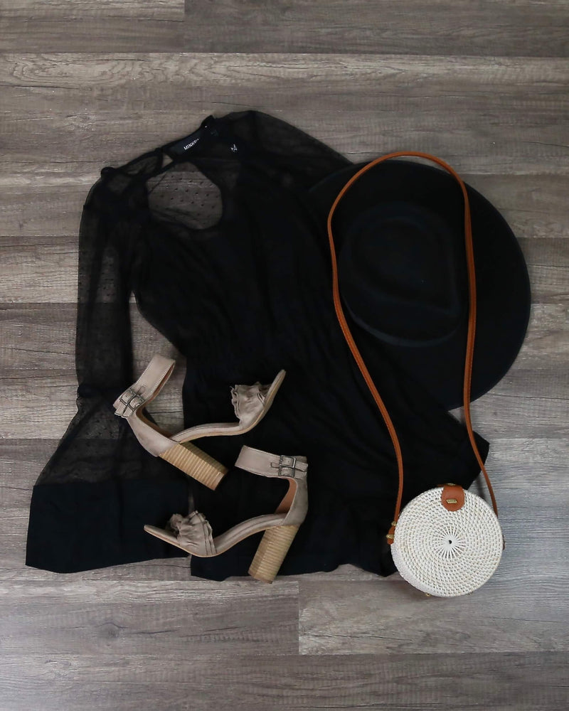 Final Sale - Minkpink - Barroco Spotty Mesh Playsuit/Romper in Black
