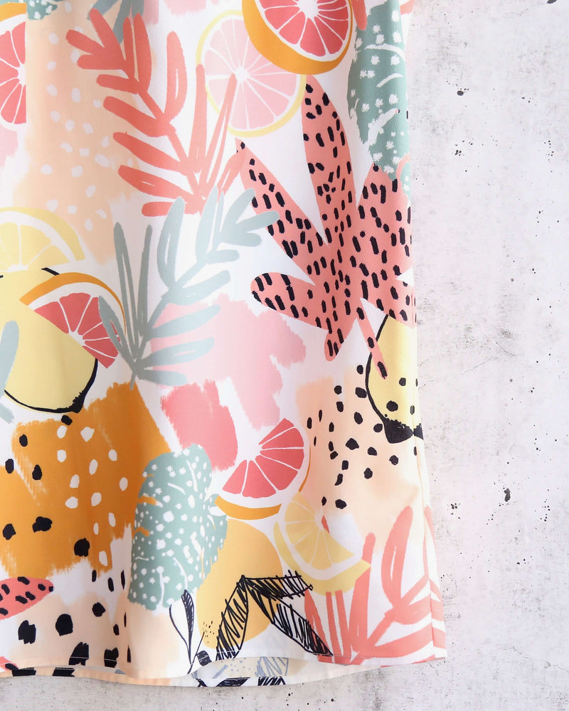 This MINKPINK Spring Citrust Mini Tee Dress in Multi is a colorful and playful tee dress. Very vibrant in person and So adorable! A best selling body style is back in a new abstract print. Like the original print, but with brighter colors! Perfect for the transition into spring!