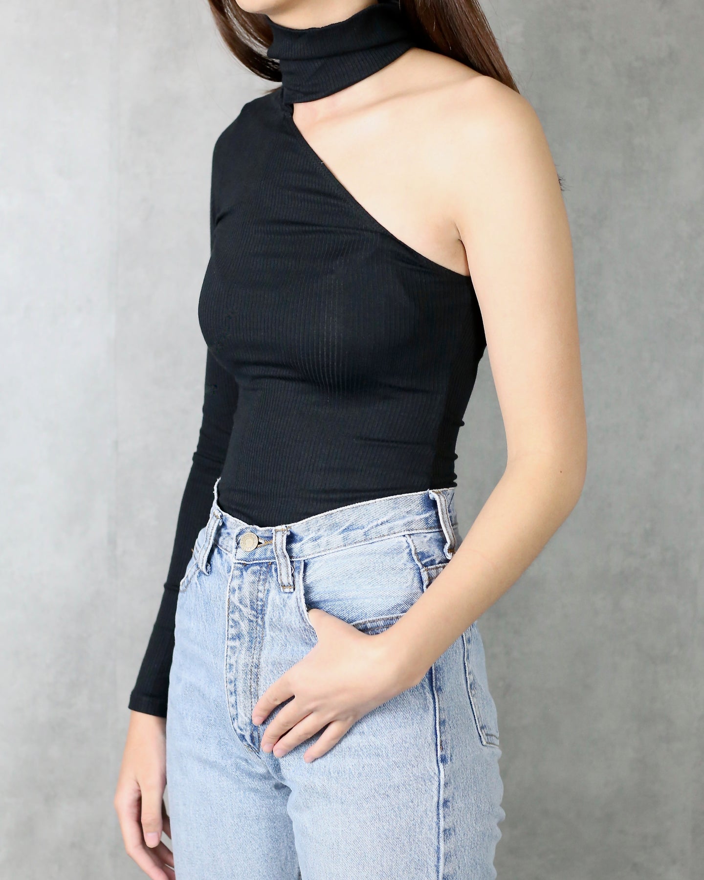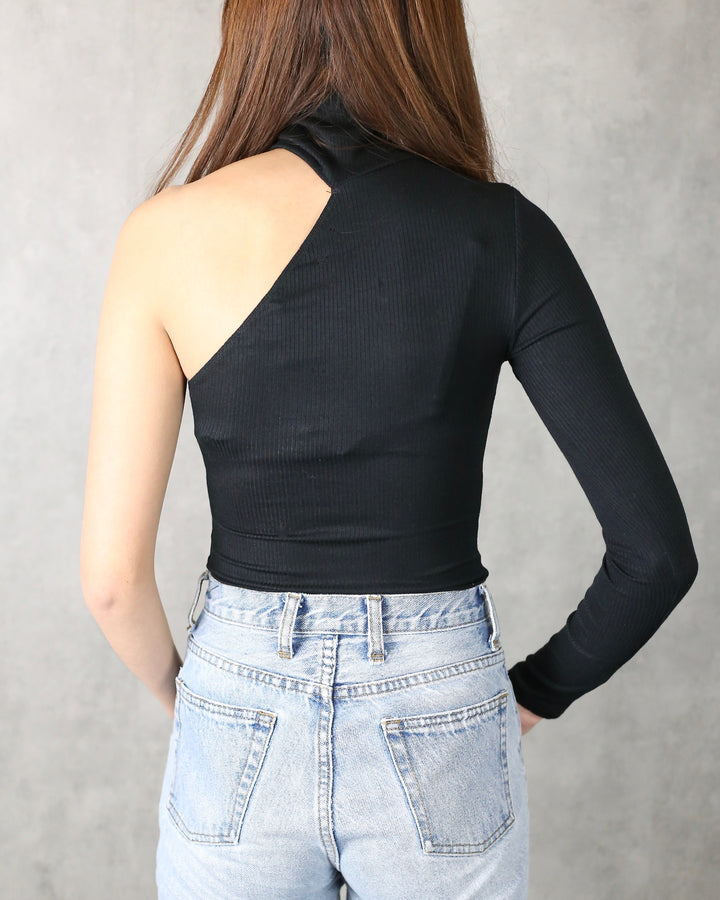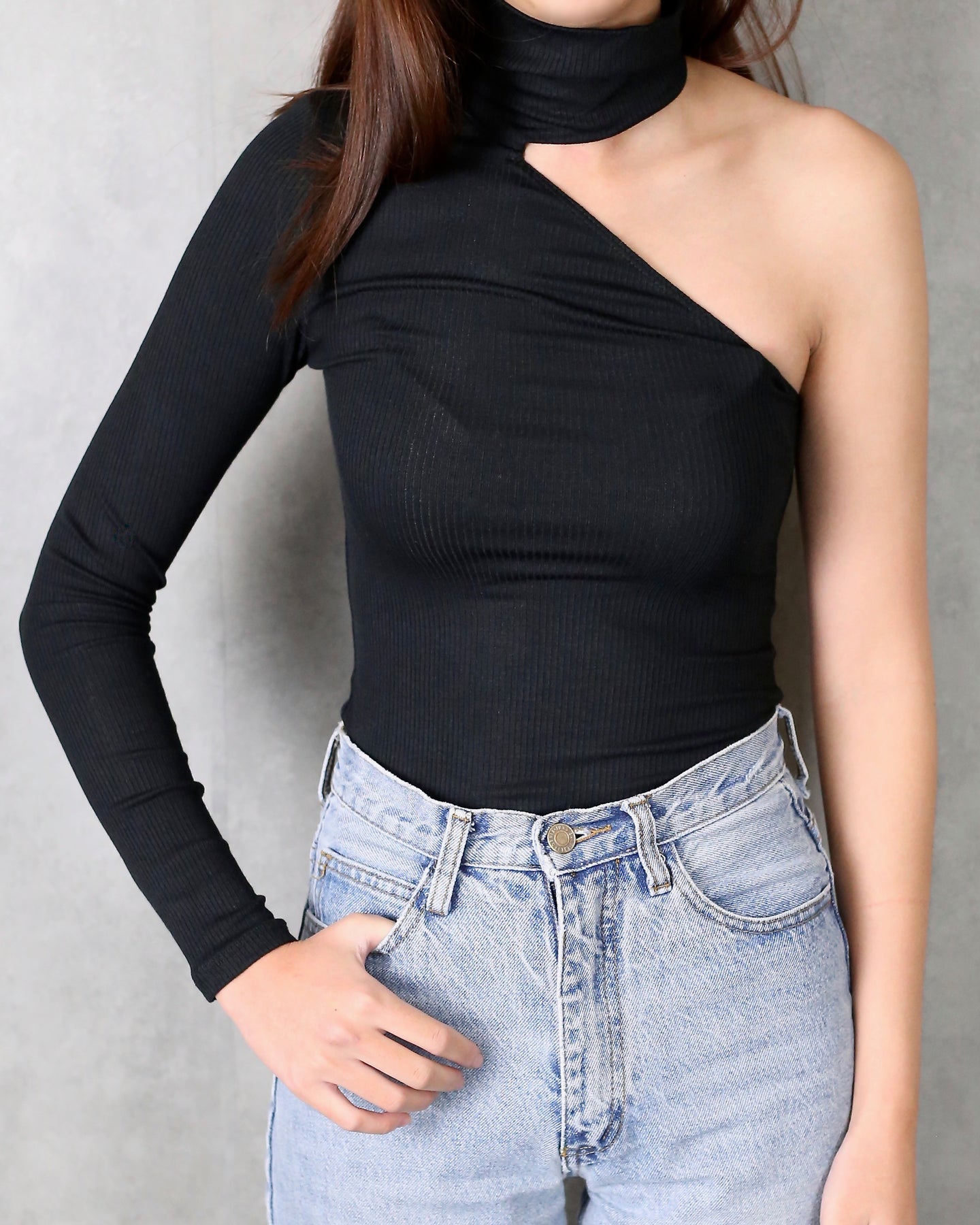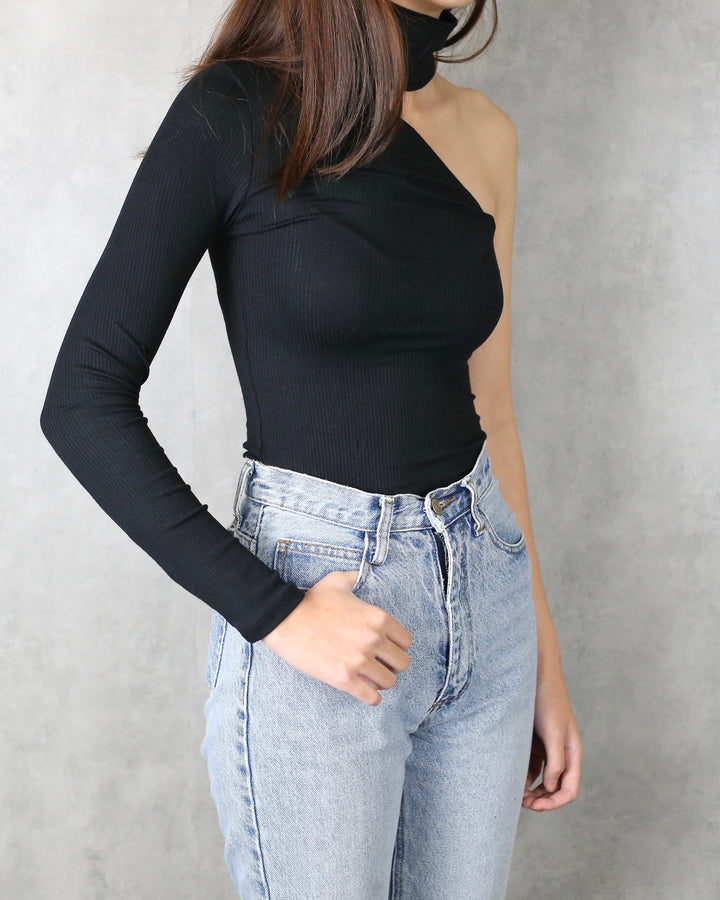 This one shoulder turtleneck top is perfect for every outfit! Featuring a seamless ribbed knit fabric, turtle neckline, and one shoulder long sleeve, this top would look perfect with a pair of jeans and some booties in the fall and spring seasons!