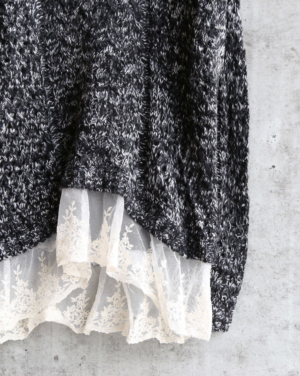 This sweater is super cute to wear as an oversized fit to wear as a dress! This sweater features an open knit design, lace hem, and a cozy fabric. Pair this sweater with some leggings or knee high boots if worn as a dress!
