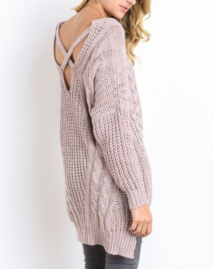 oversize cross back knit sweater - marle mauve - shophearts - 1