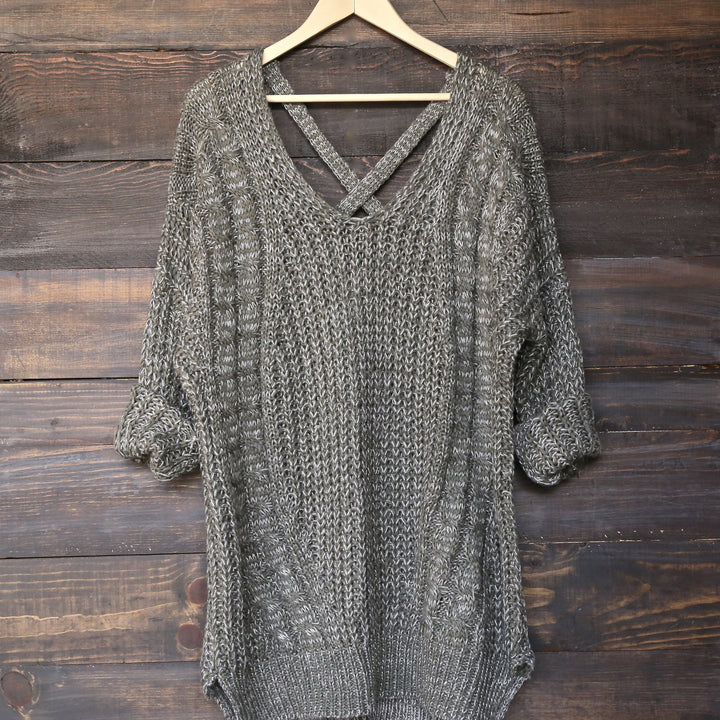 oversize cross back knit sweater - marle olive - shophearts - 2