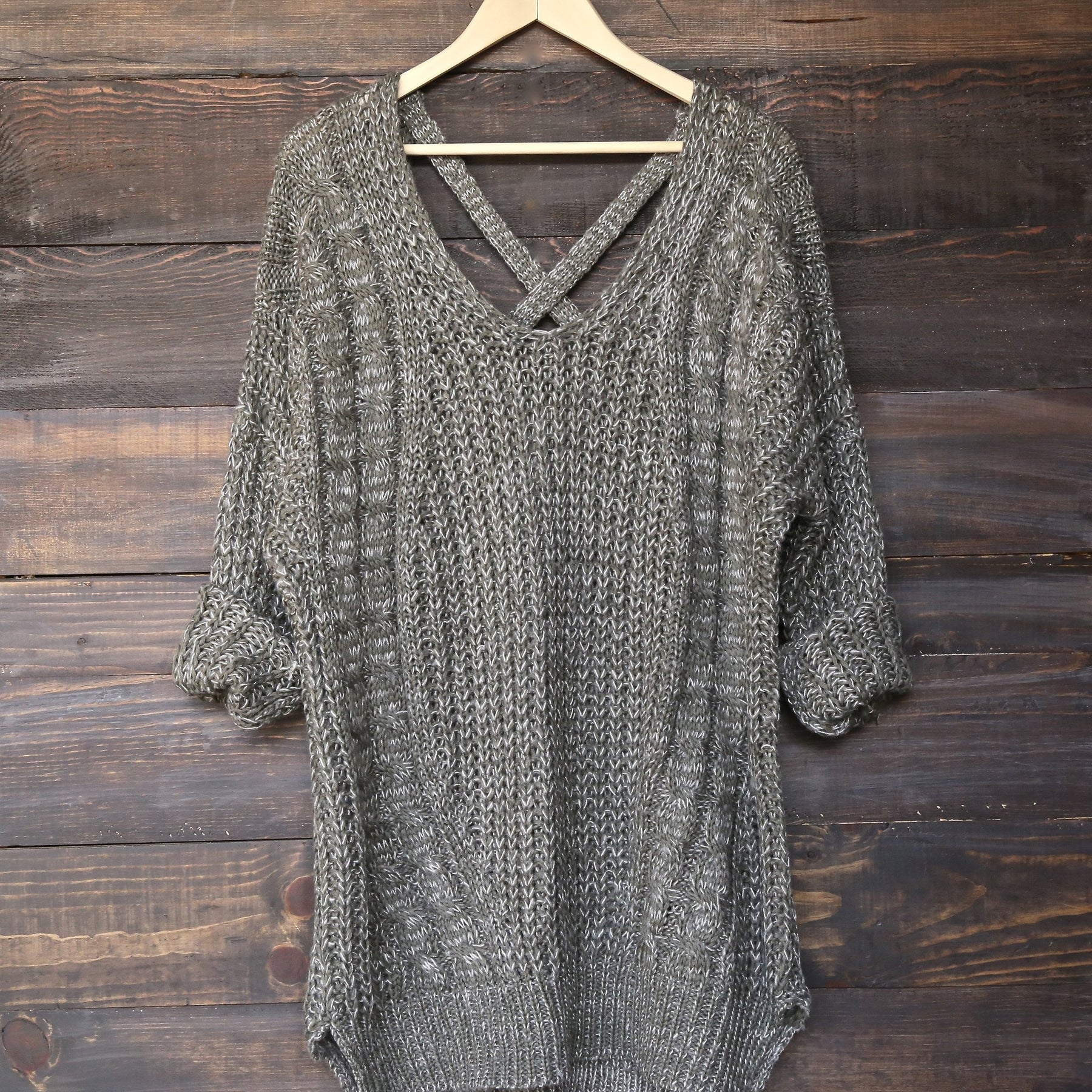 oversize cross back knit sweater - marle olive - shophearts - 1