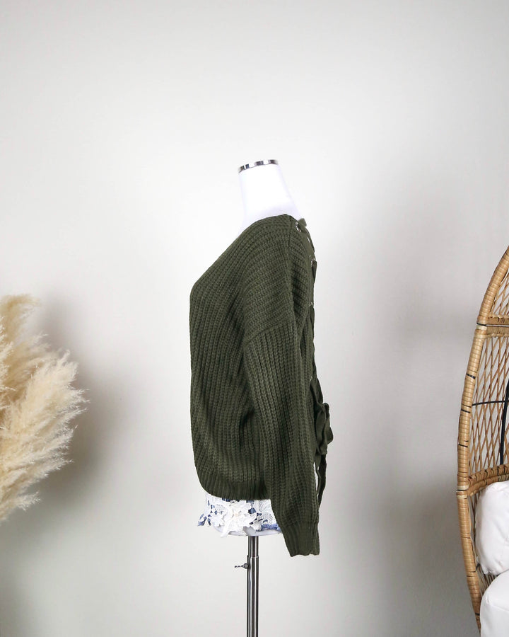 Own the Night Lace Up Back Knit Sweater in More Colors